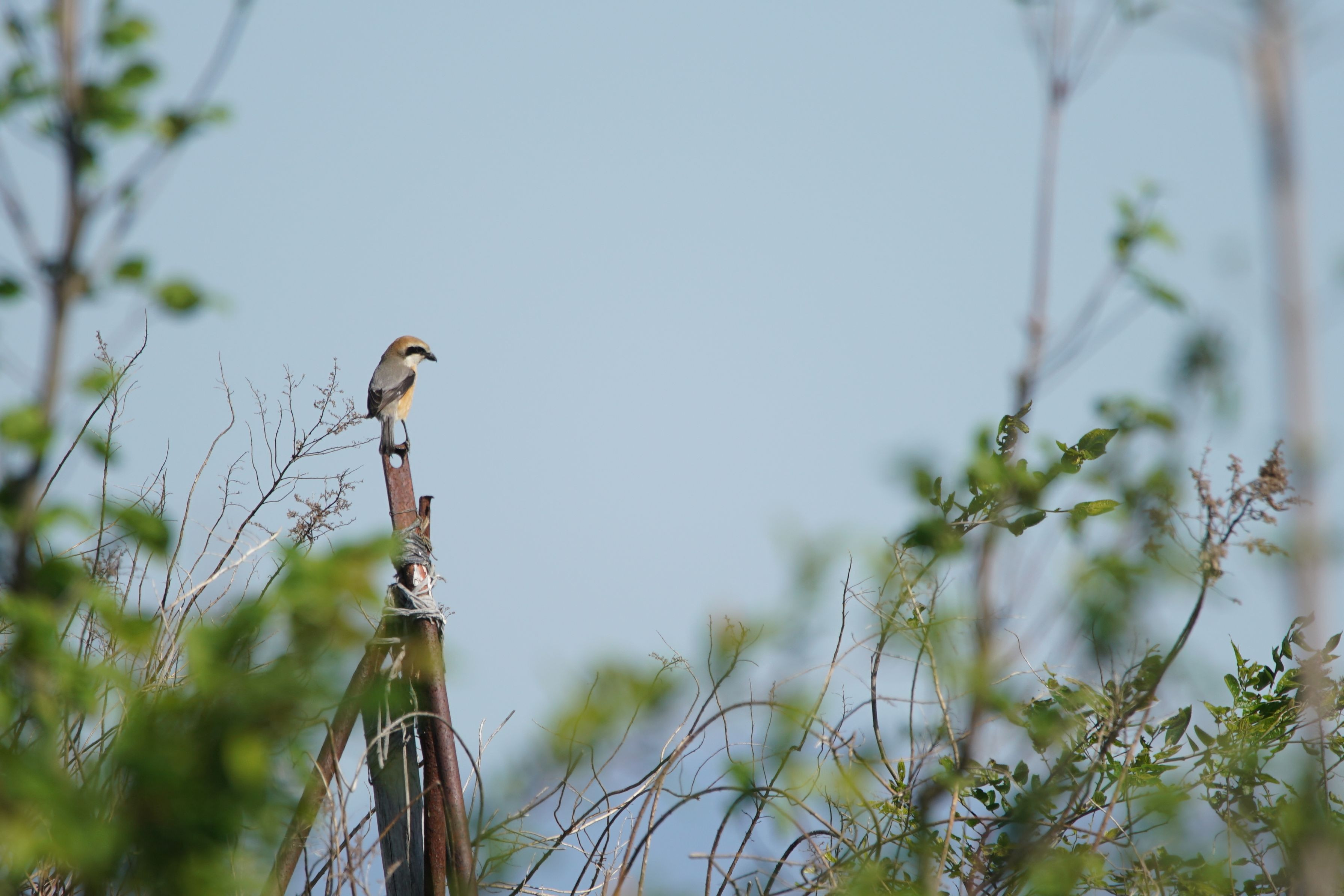 <5680>今朝も昨日同様強風で小鳥たちに恵まれませんでした。やっと遠くのモズを見つけました。