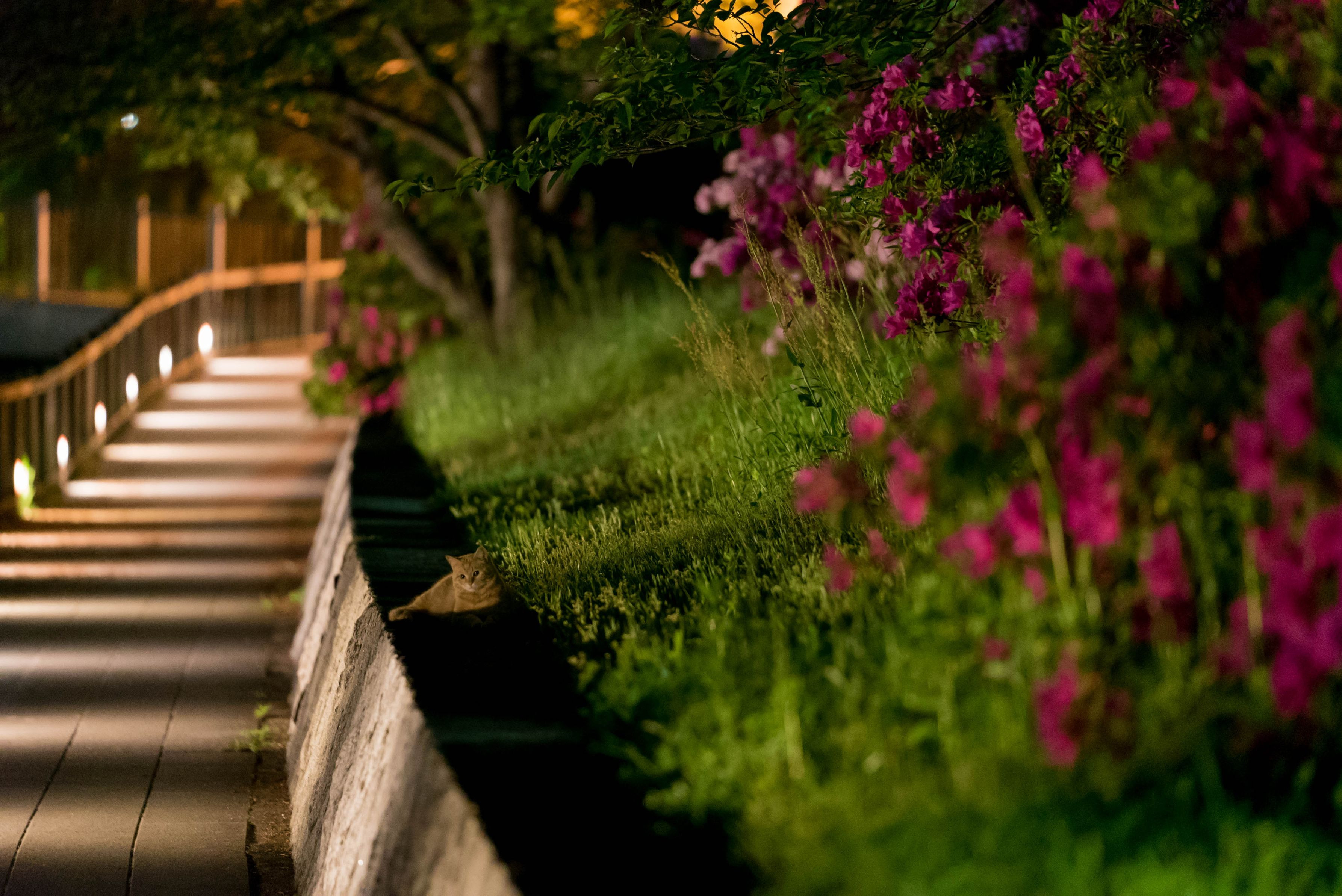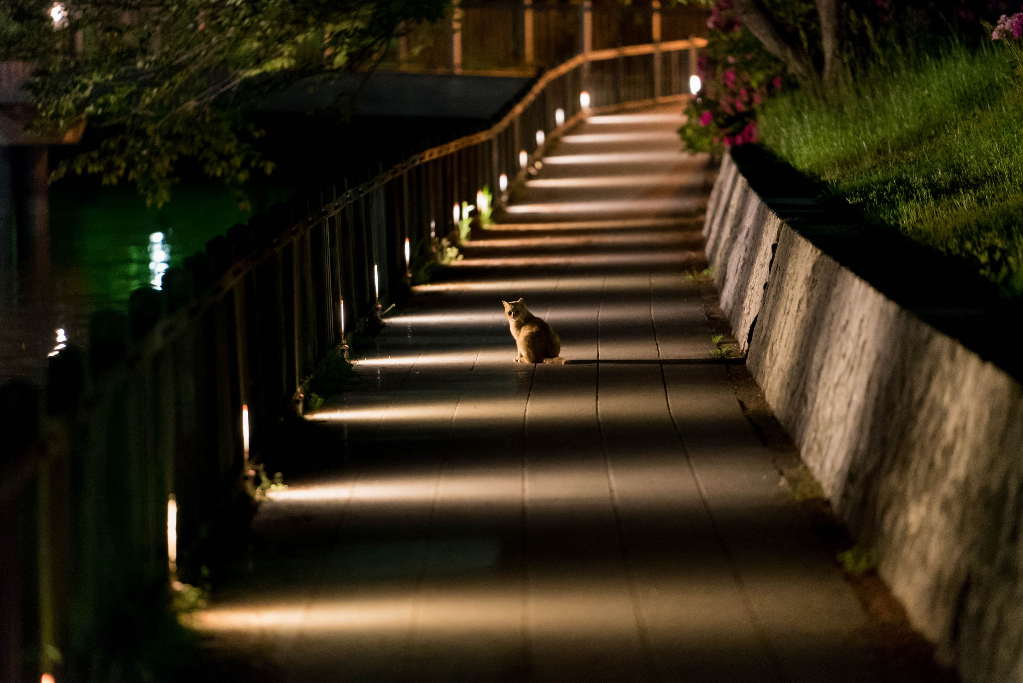 カメラ片手に夜の散歩 通せんぼする猫
