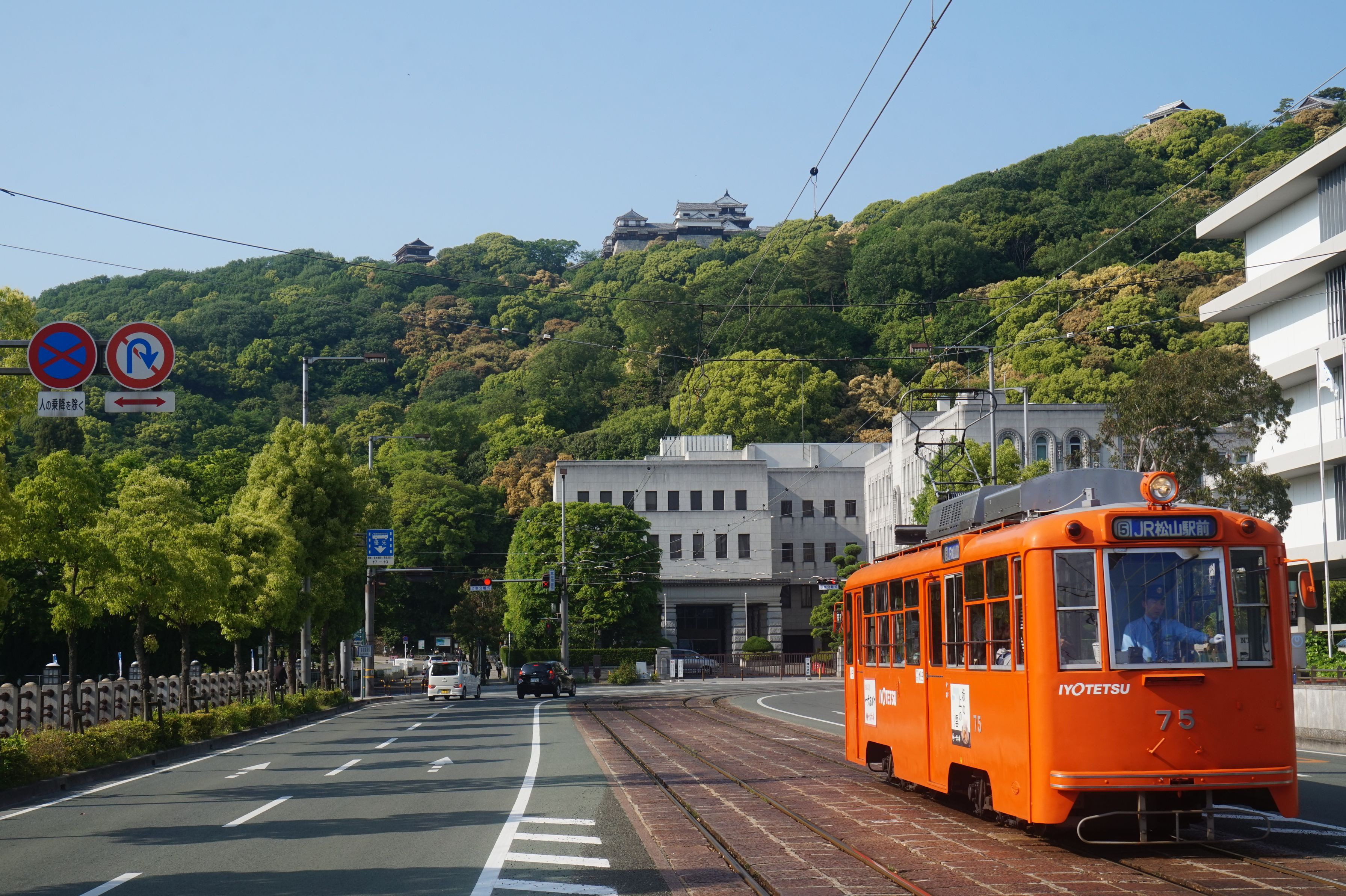 松山城と路面電車