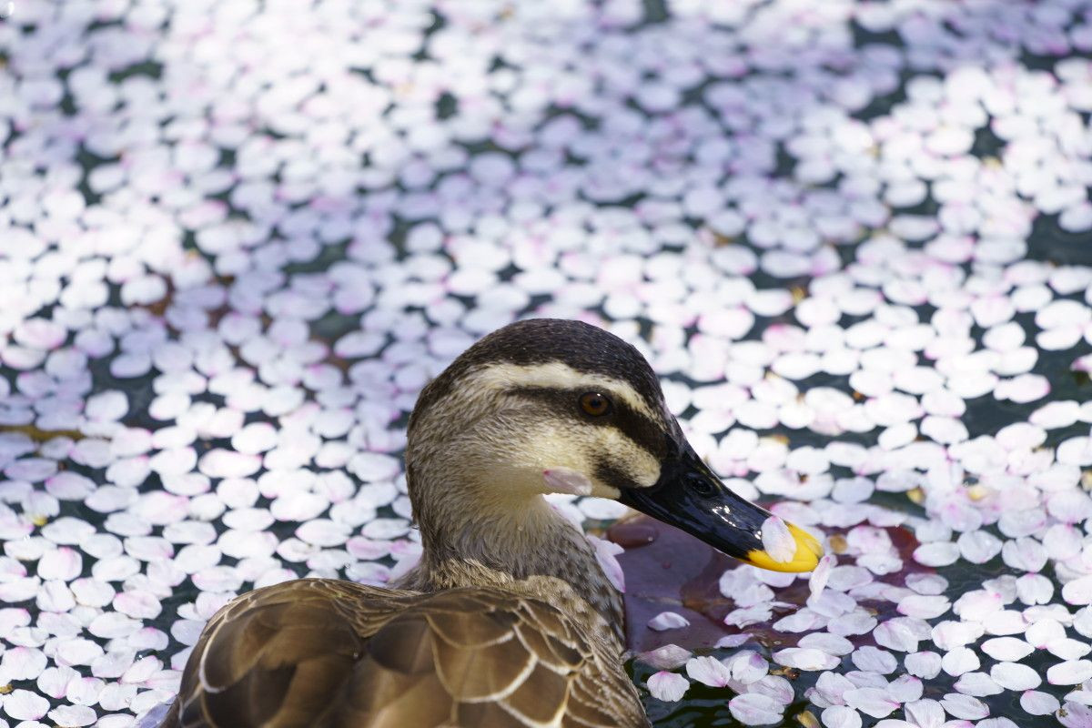 花筏とカルガモ