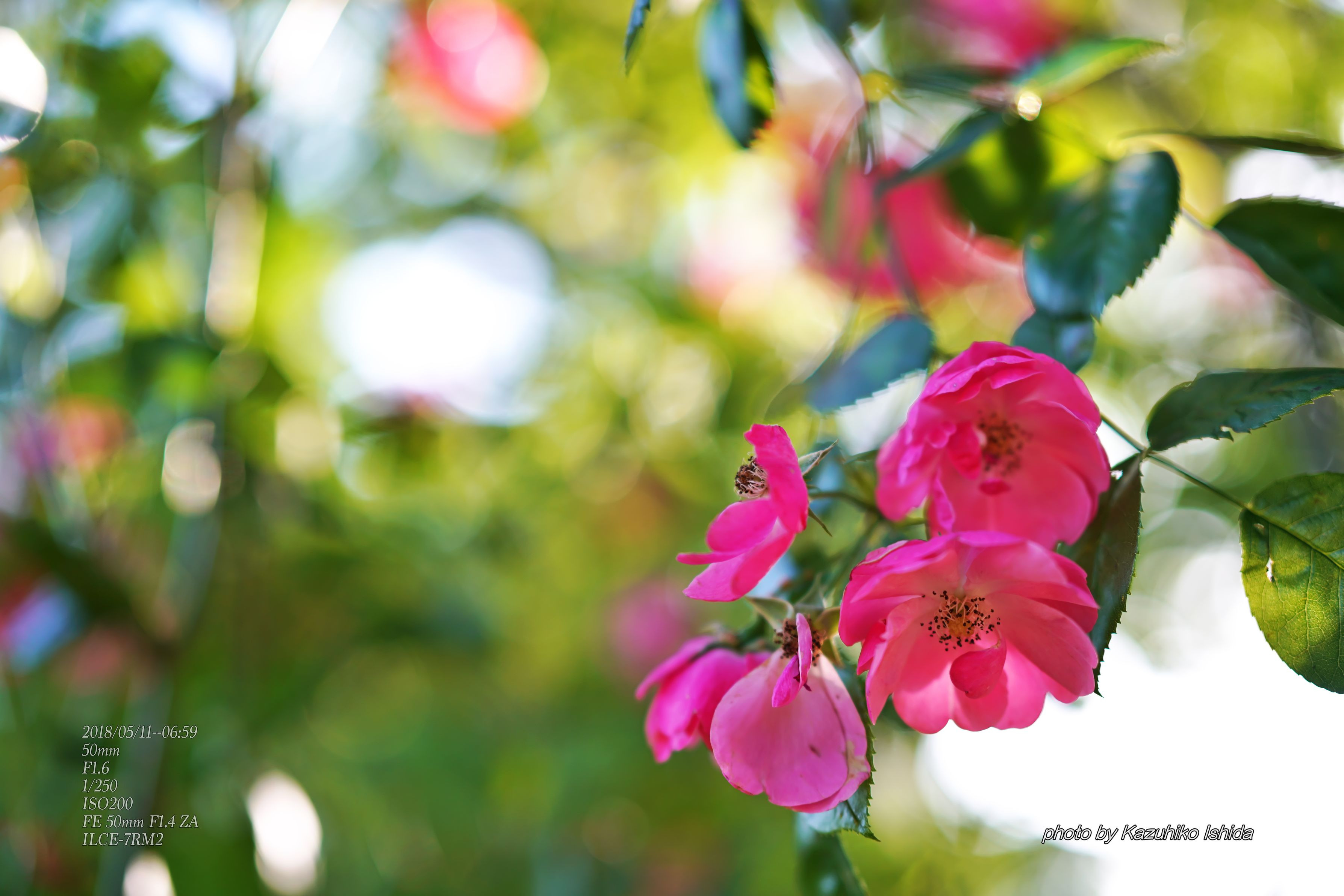 公園南側の薔薇が咲き始めました。 散歩で朝日に照らされている薔薇を撮ってみました。