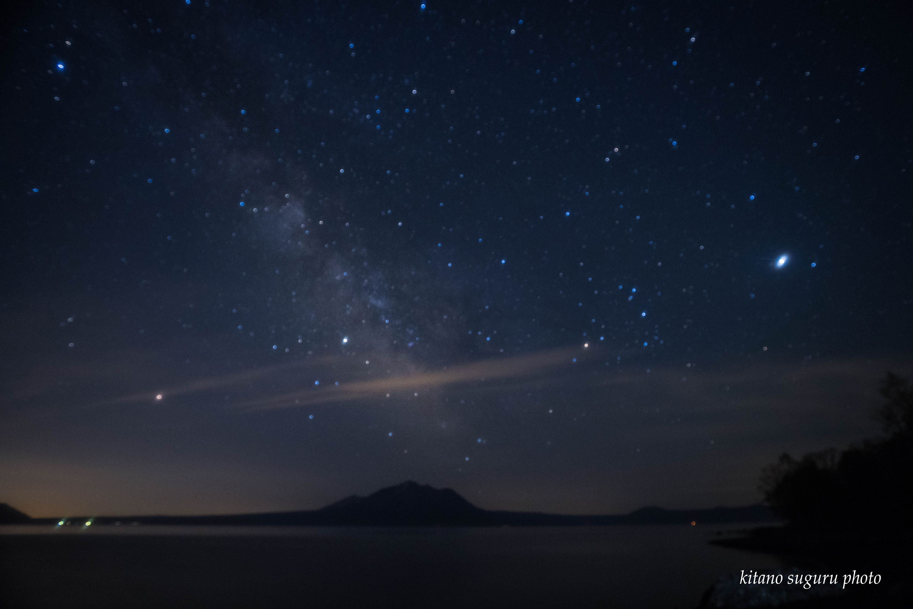 今年初めての支笏湖からの星景に挑戦しました。最初は雲が多かったのですが 晴れてくれてラッキーでした。