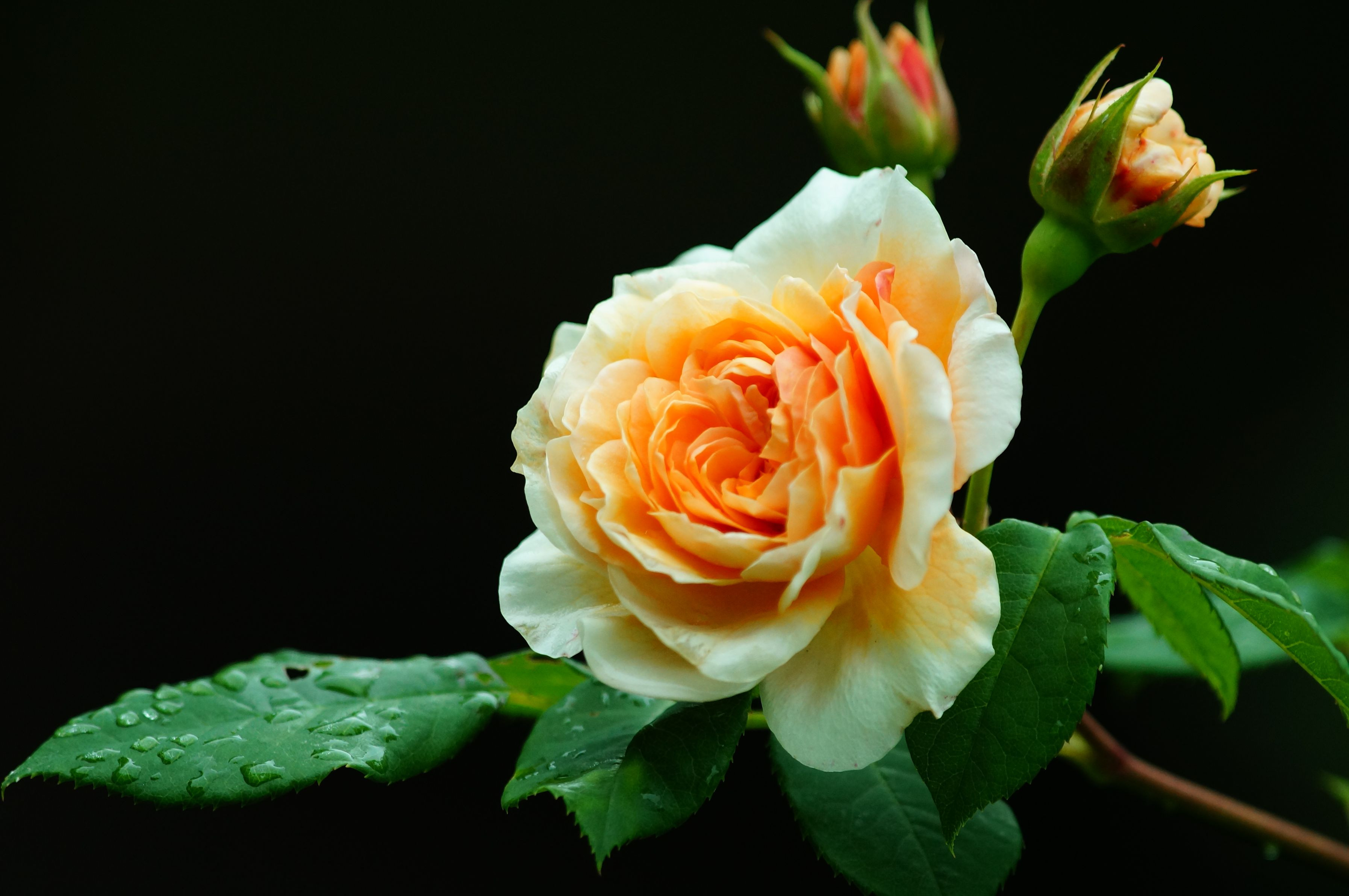 バラの季節になりました 『エブリン』と名が有りました、作出 雨上がりですが少しは梅雨のような気候で30分後くらいには雨粒もやや多くなり 引き上げましたが10分位後にはやみました。や~な天気でした。・・