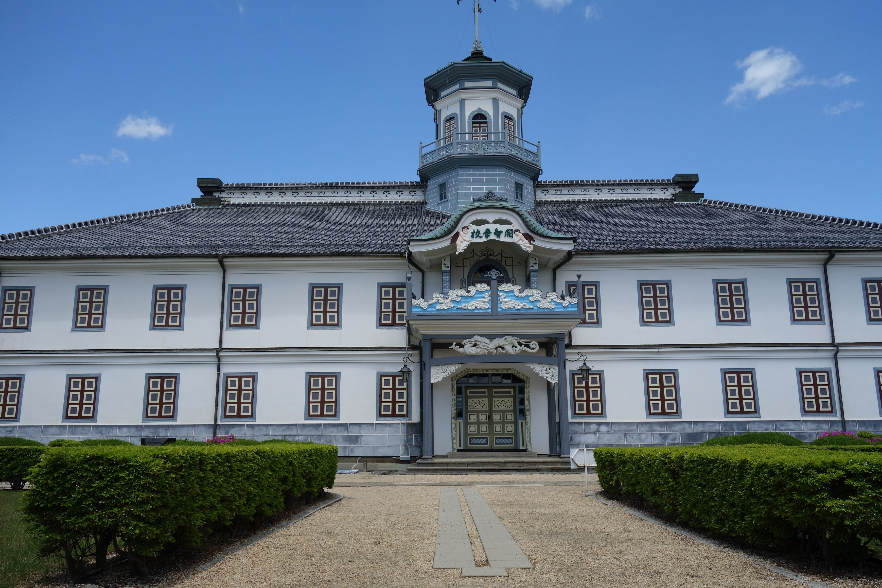明治9年建築の建物だそうです。 全体を入れたかったのですがギリギリまで下がったら鉄柵に背中が当たったのでこれ以上は無理かな…。