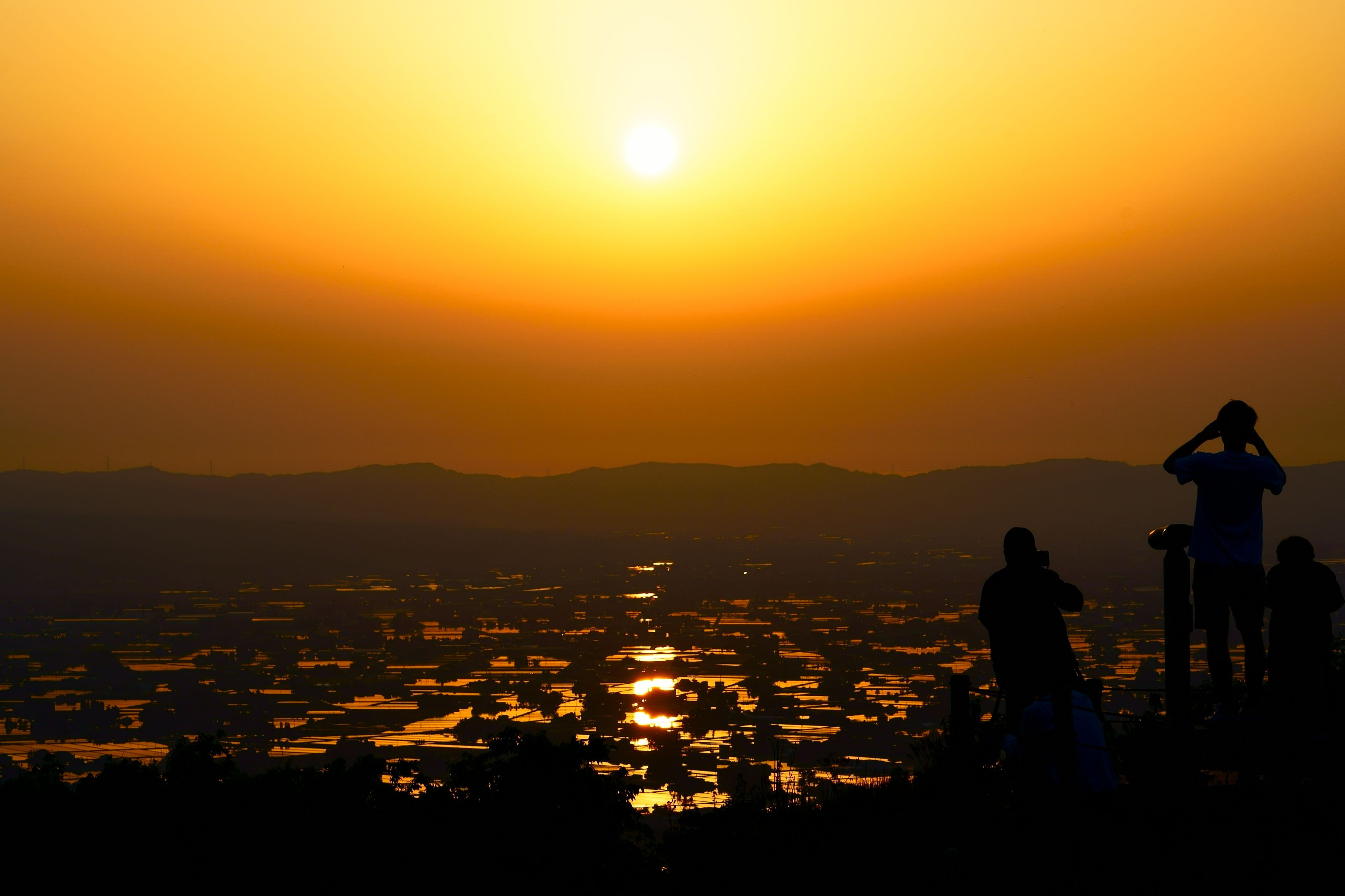 富山県砺波市の散居村展望台からの夕日です。