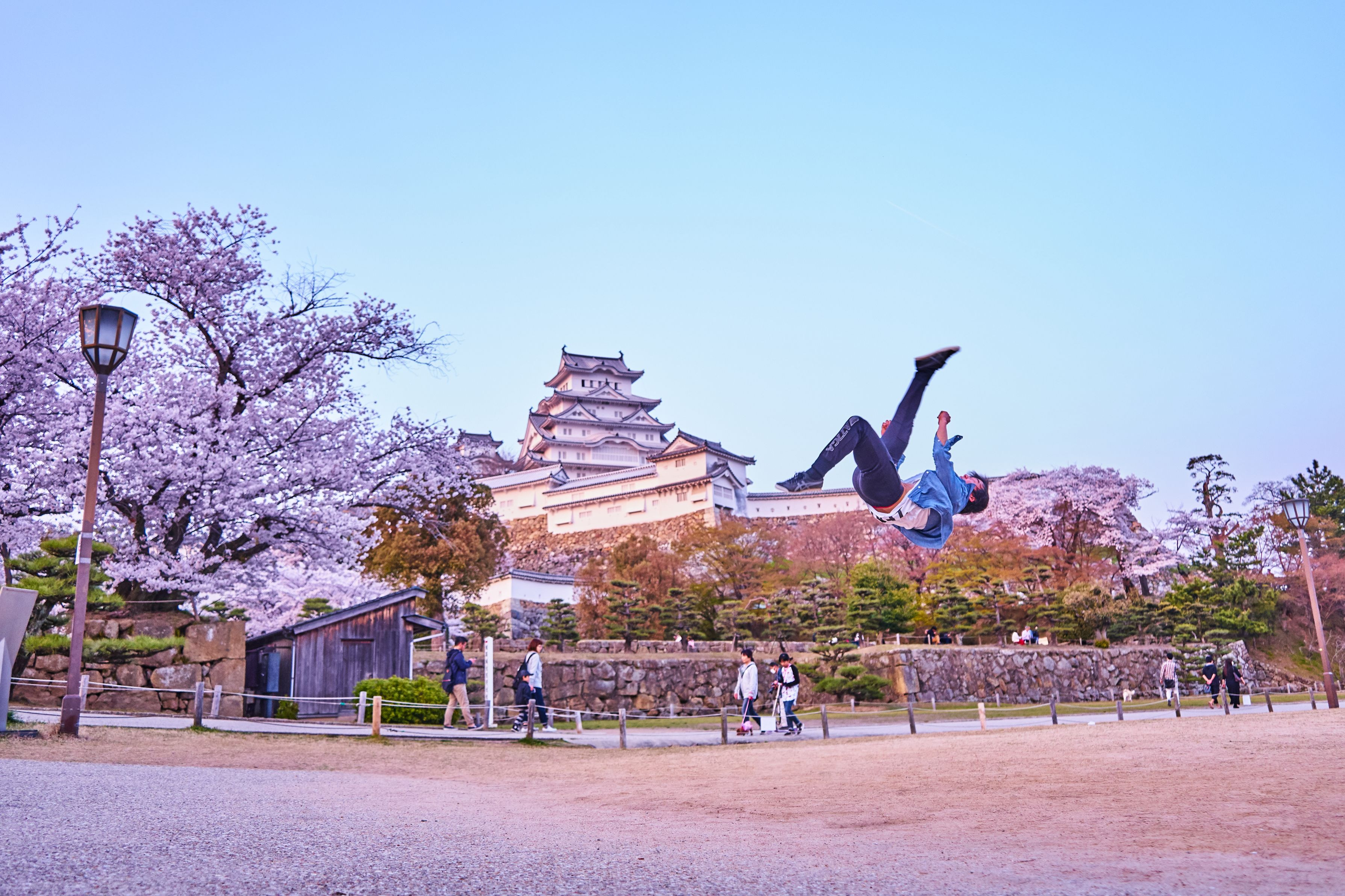トリッキングセルフポートレート。今回の写真は姫路城で桜と共に撮影したものです。