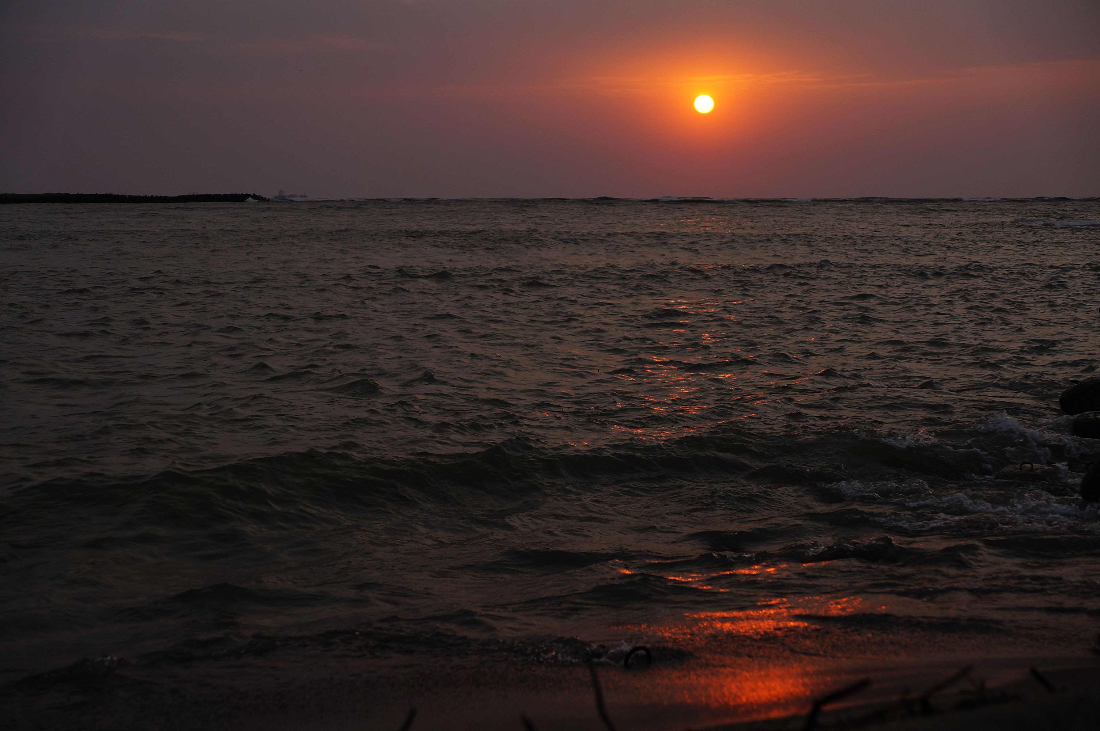 曇り日は思うより寒い最上川河口の落日