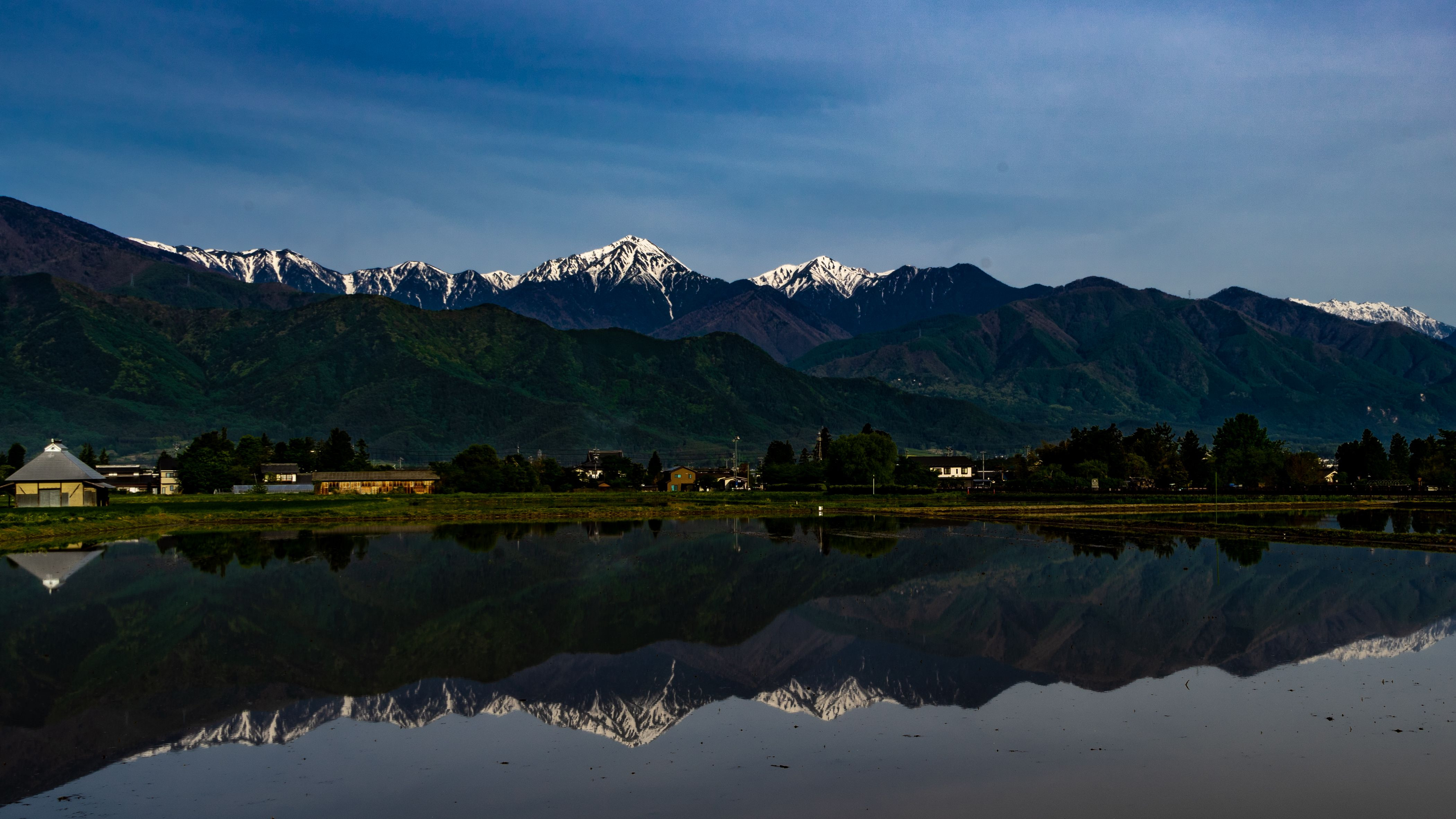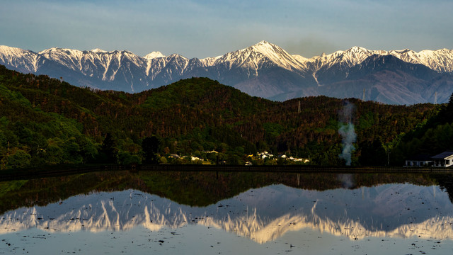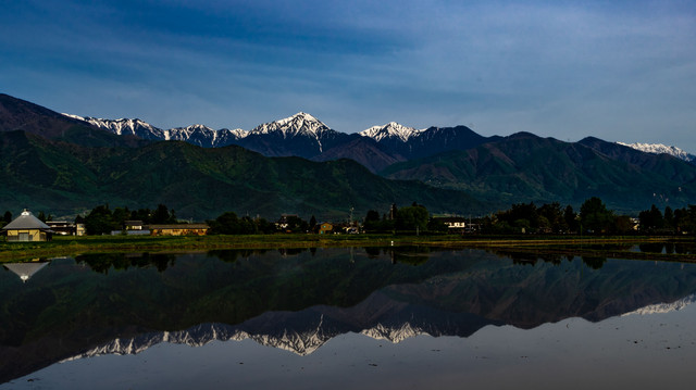 田植えの前の光景を撮りたくて参りました。天候と水張の時がマッチする日を逃すまいと狙ったのですが、やはり難しいです。