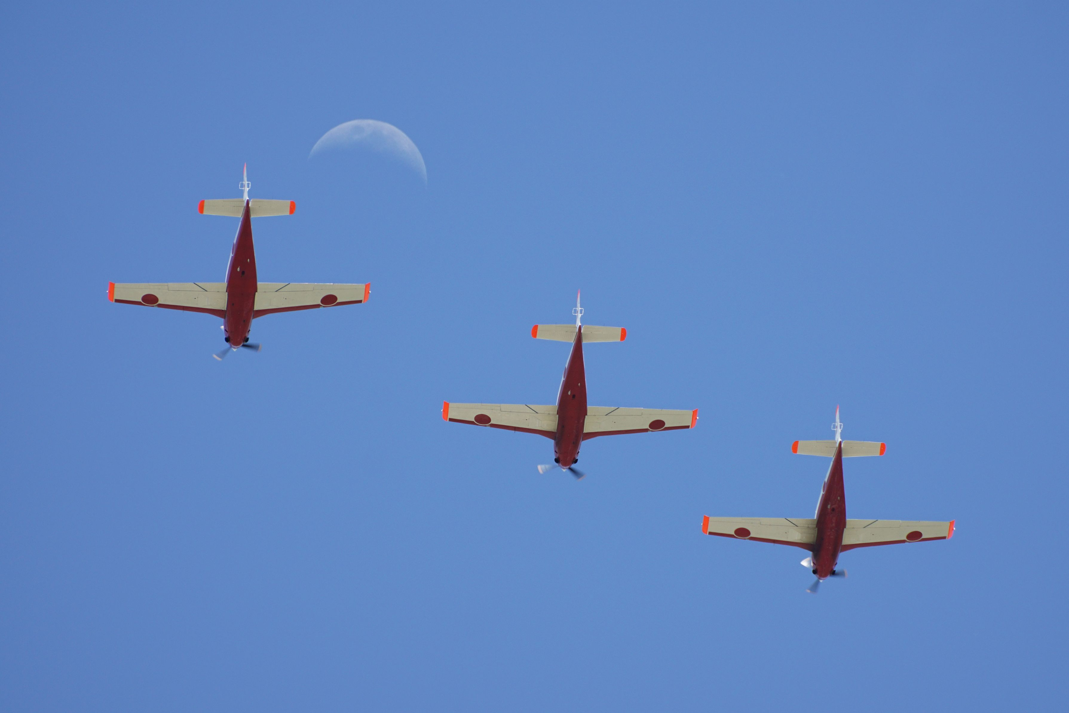 静浜基地航空祭での一コマです。 T7の編隊が新月をバックに撮ることができました。