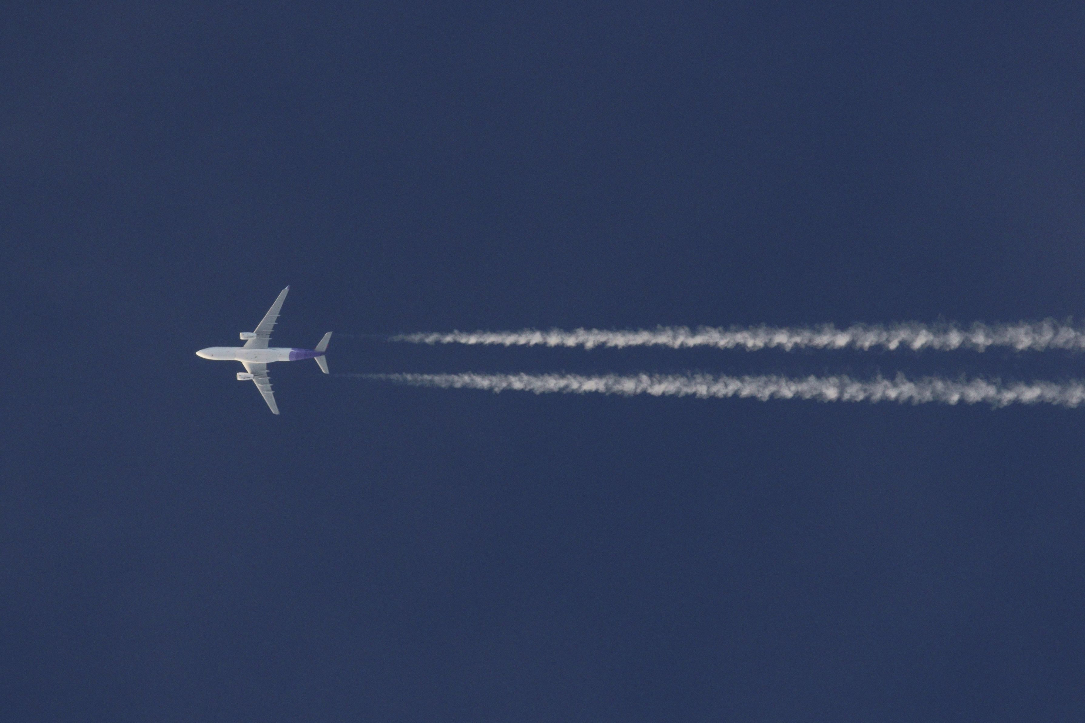 頭上を国際線機体が4000フィートを超える高度をコントレールを引きながら飛んで行きました。