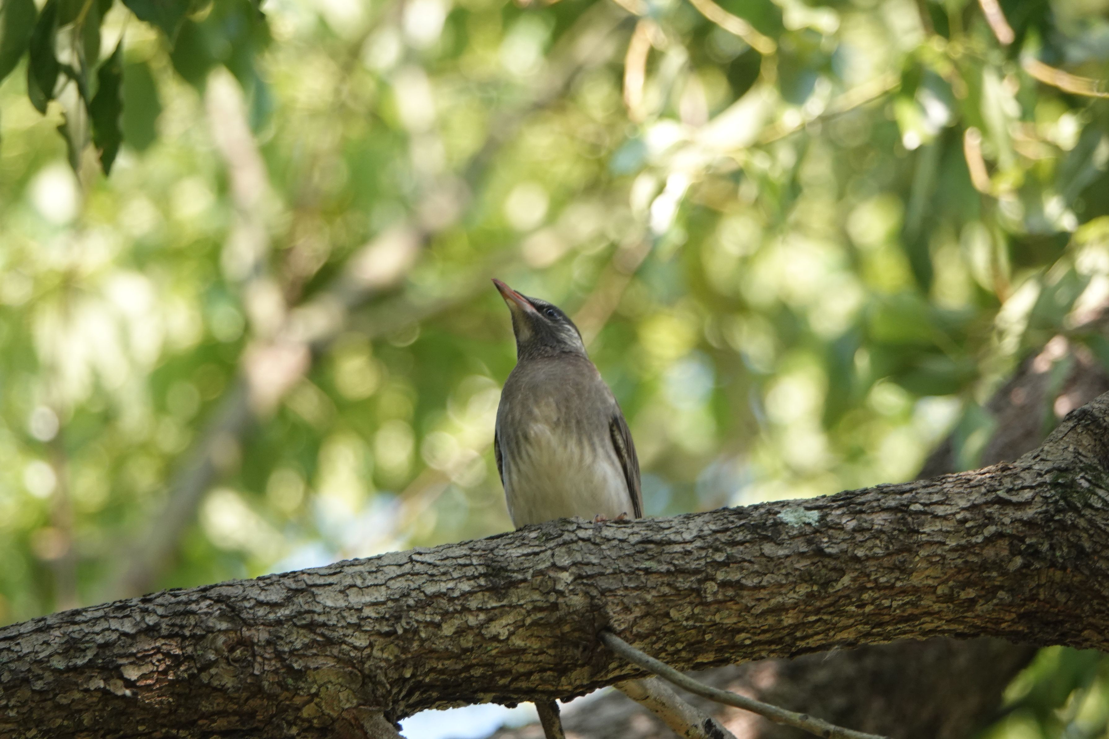 変わった鳴き声で賑やかです 子育て中のムクドリさん?