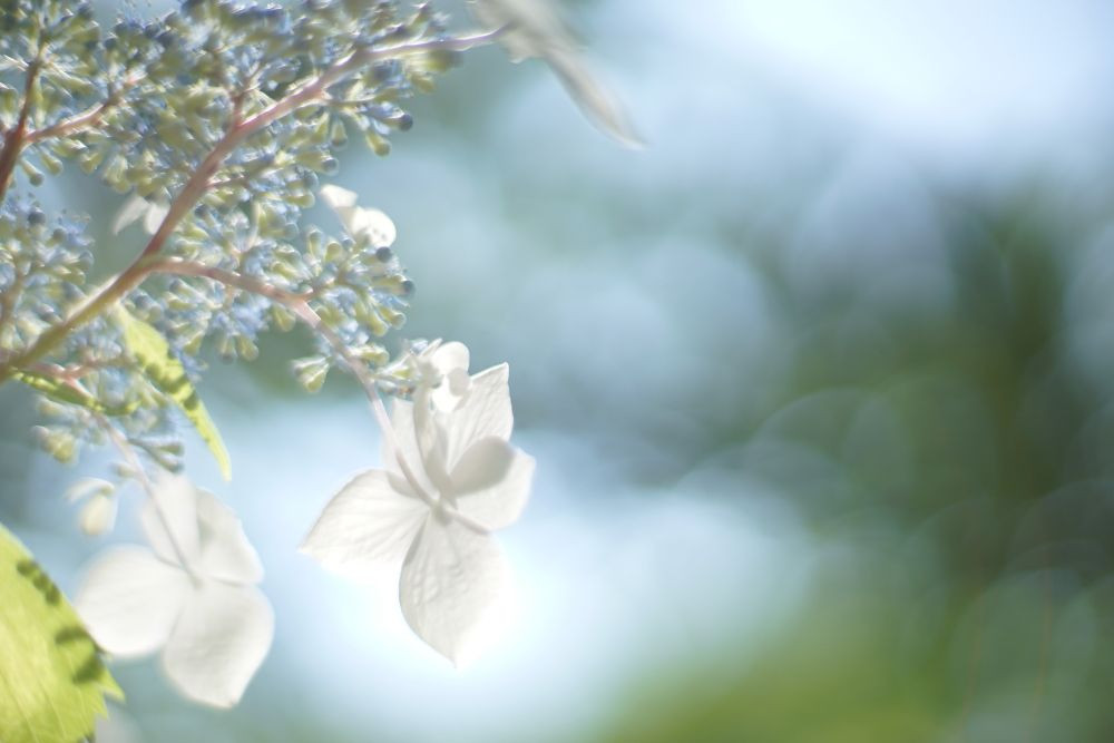 紫陽花を下から狙って透ける様な花びらを… 梅雨の前だから、爽やかな感じにできたと思います