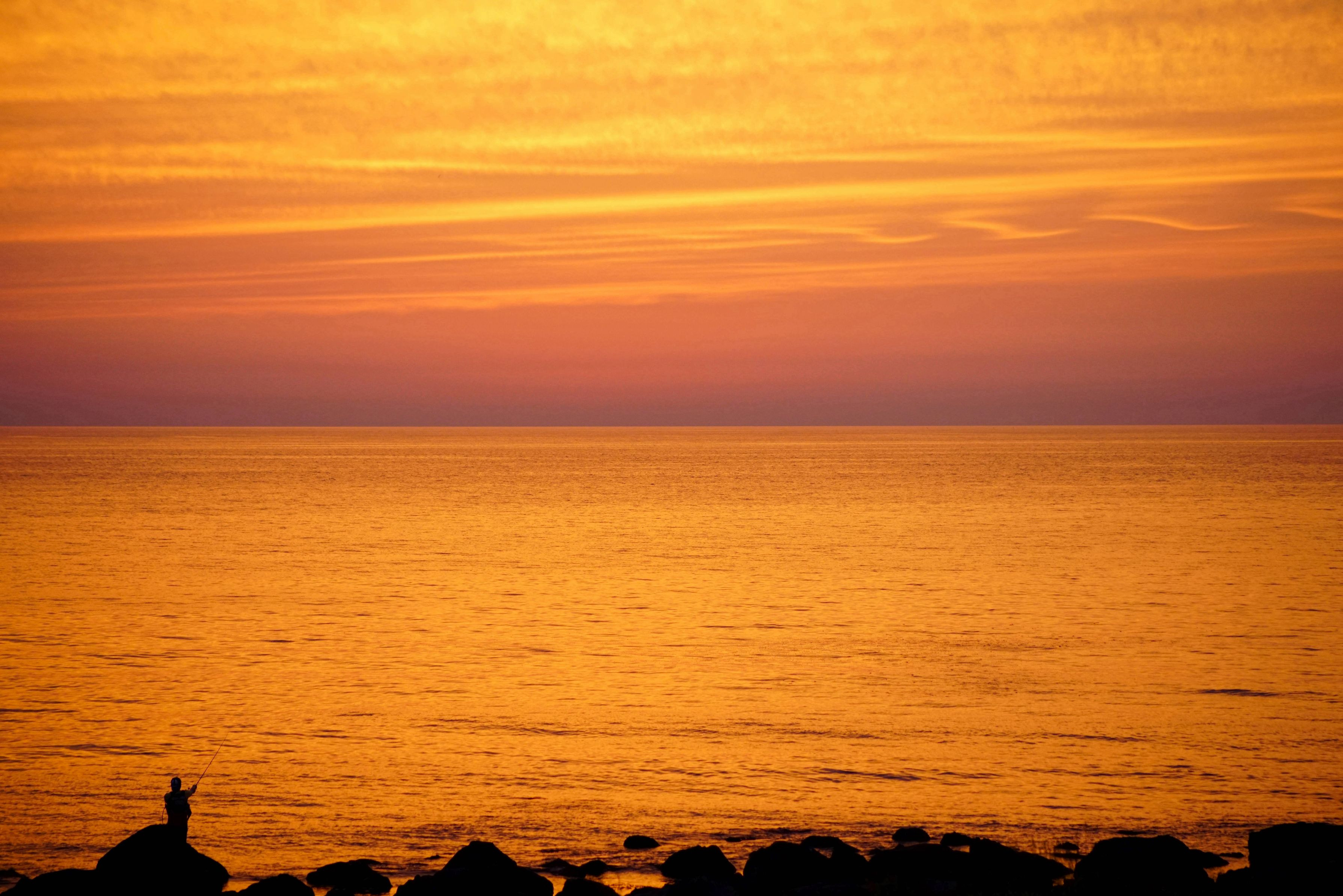 日本海の夕景を撮りたくて久々にカメラを携えて7号線を鶴岡から北上、象潟でのショット。 釣人がアクセントになってくれました。 フィッシャーマンに、ブラヴォー!