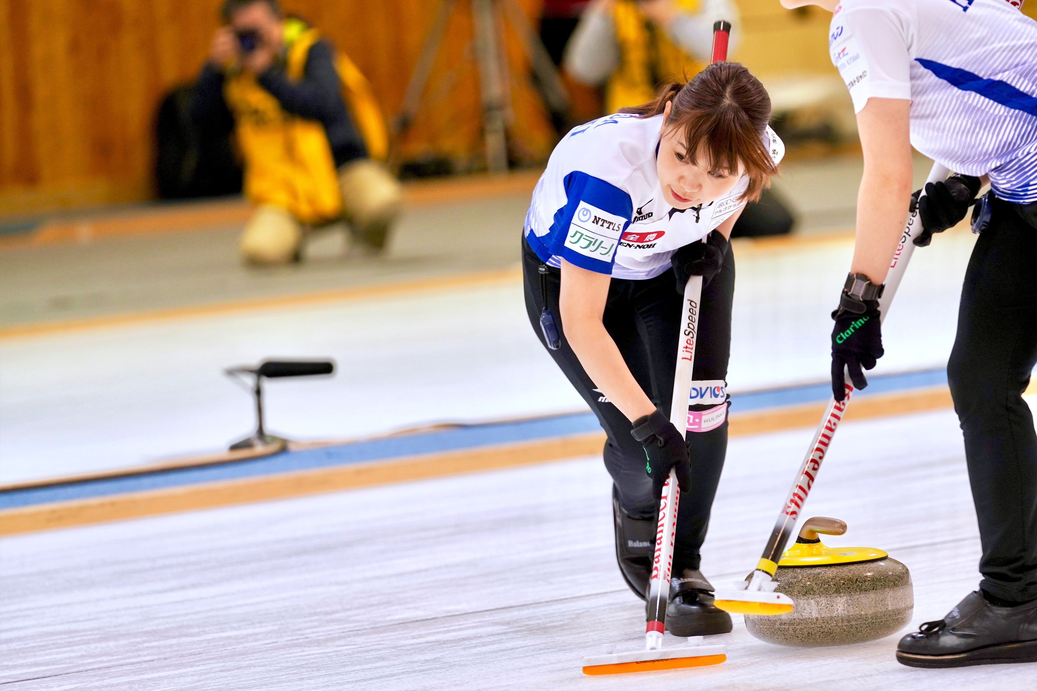 吉田夕梨花選手のスイープシーン。夕梨花選手のスイープが1番好きです。この足の運びがカッコいいのも好きな要因の1つ。