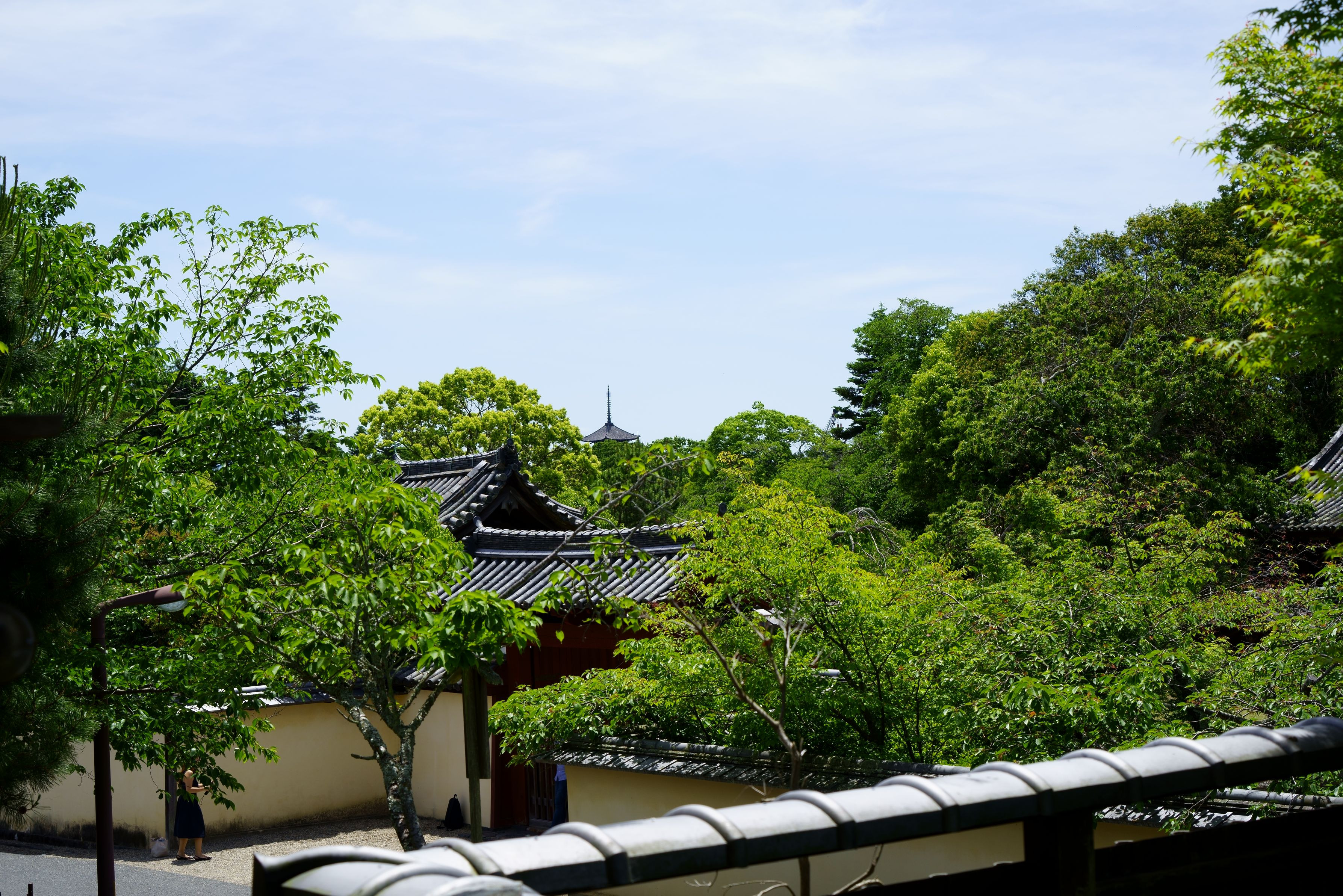 東大寺指図堂の縁側より興福寺の五重塔が見えます(*^_^*)このチラッと頭の部分が見えるのがなんとも(*´▽`*)