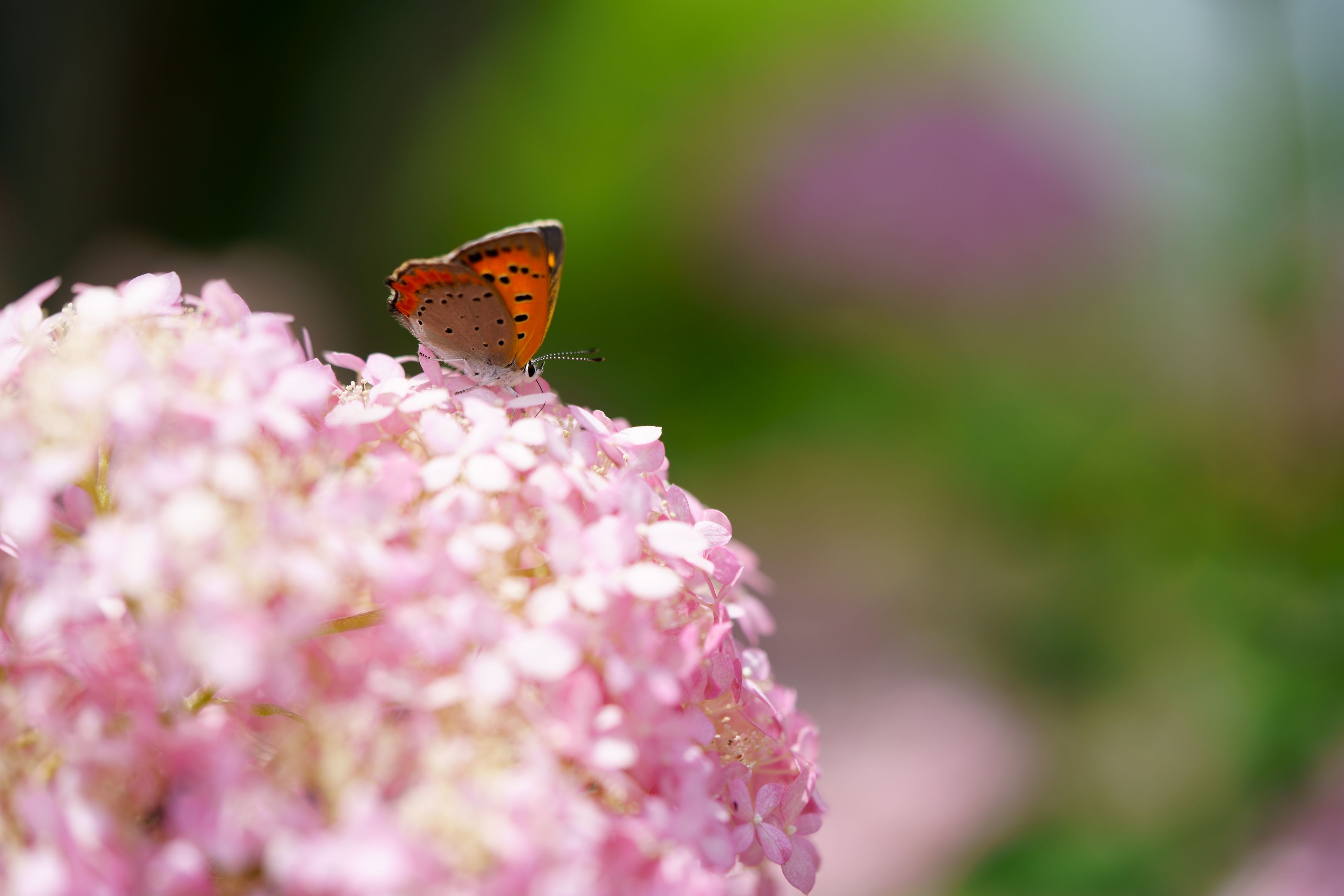 あじさいを撮っていましたら偶然蝶がとまりました。