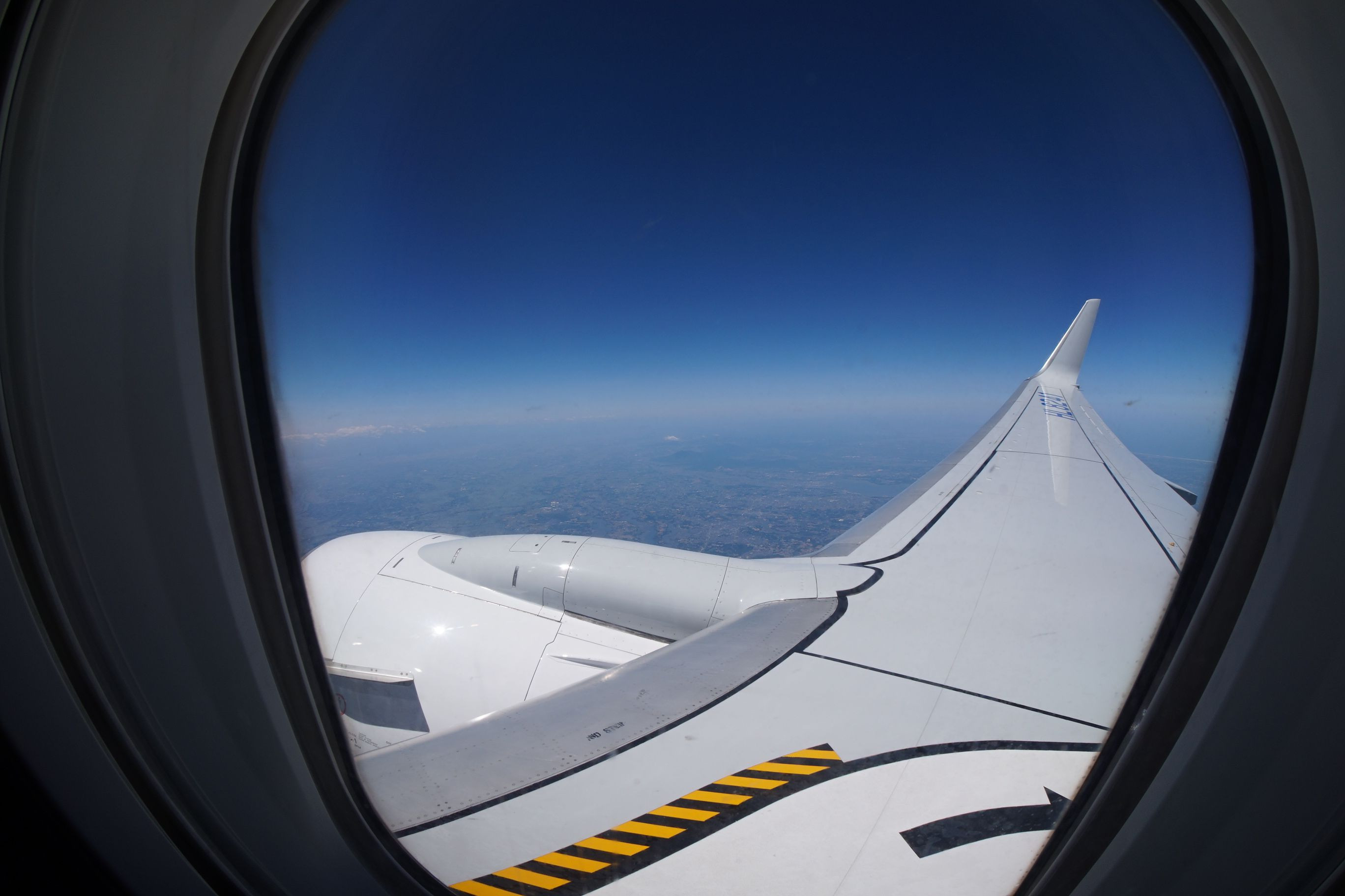 シートベルト着用サインが消えた頃かな。よく見れば地上が見えています。 この見えるかな、見えないかな、というギリギリの感じが好きです。