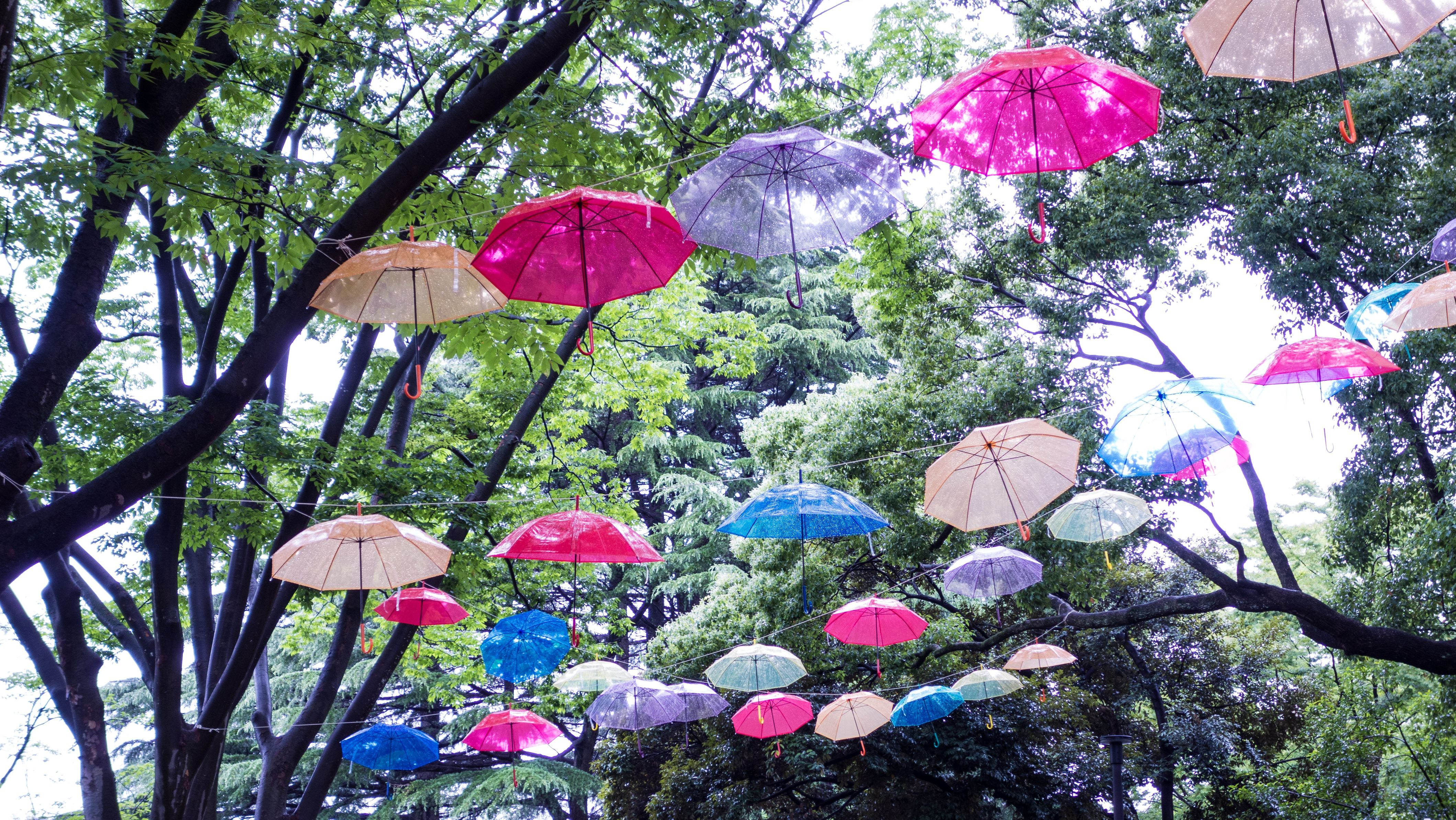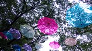 色とりどりの傘が宙に舞う