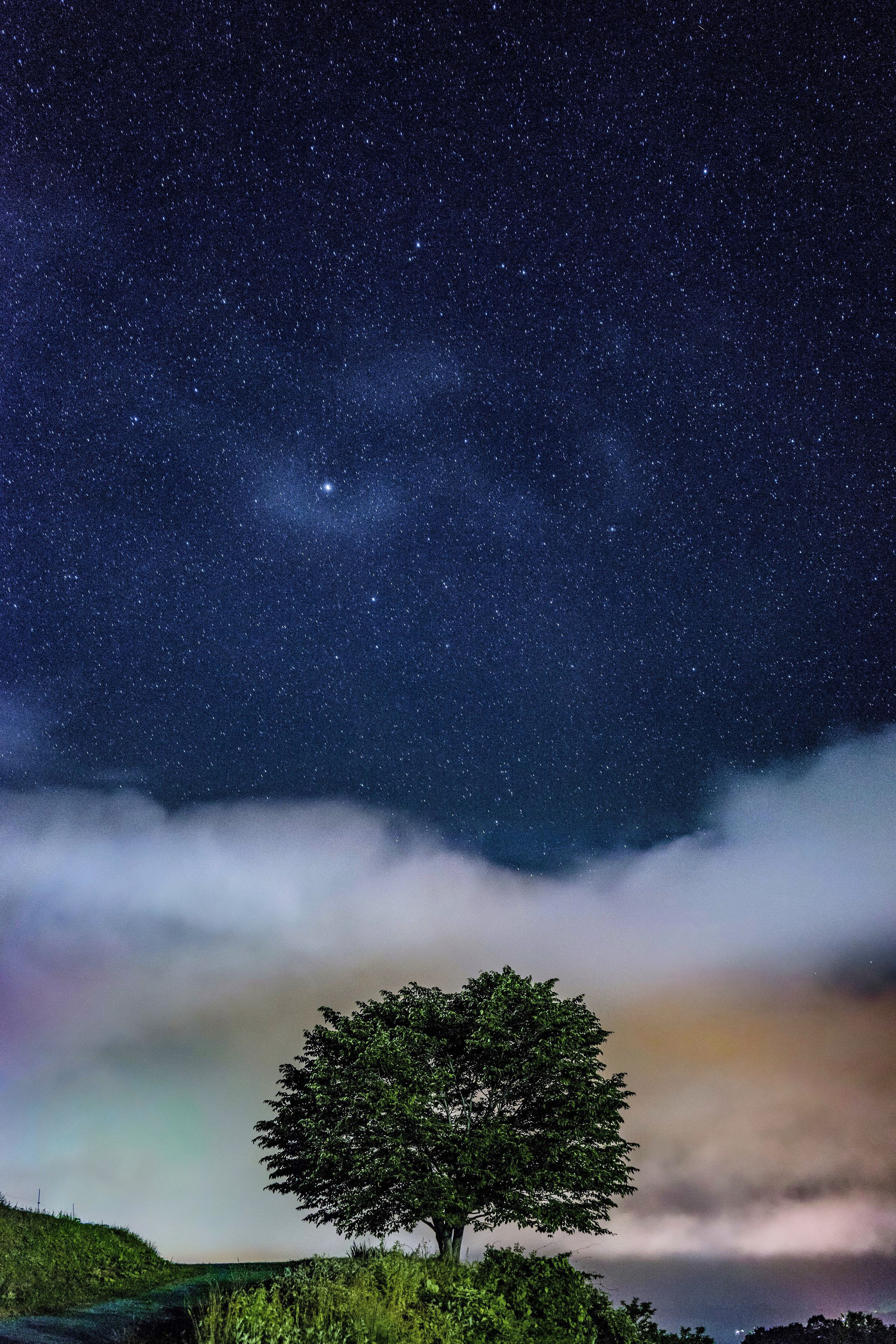 町あかりを吸い込んだ霧が下がり、星空が。 めくるめく動く雲に魅了されました(^-^)
