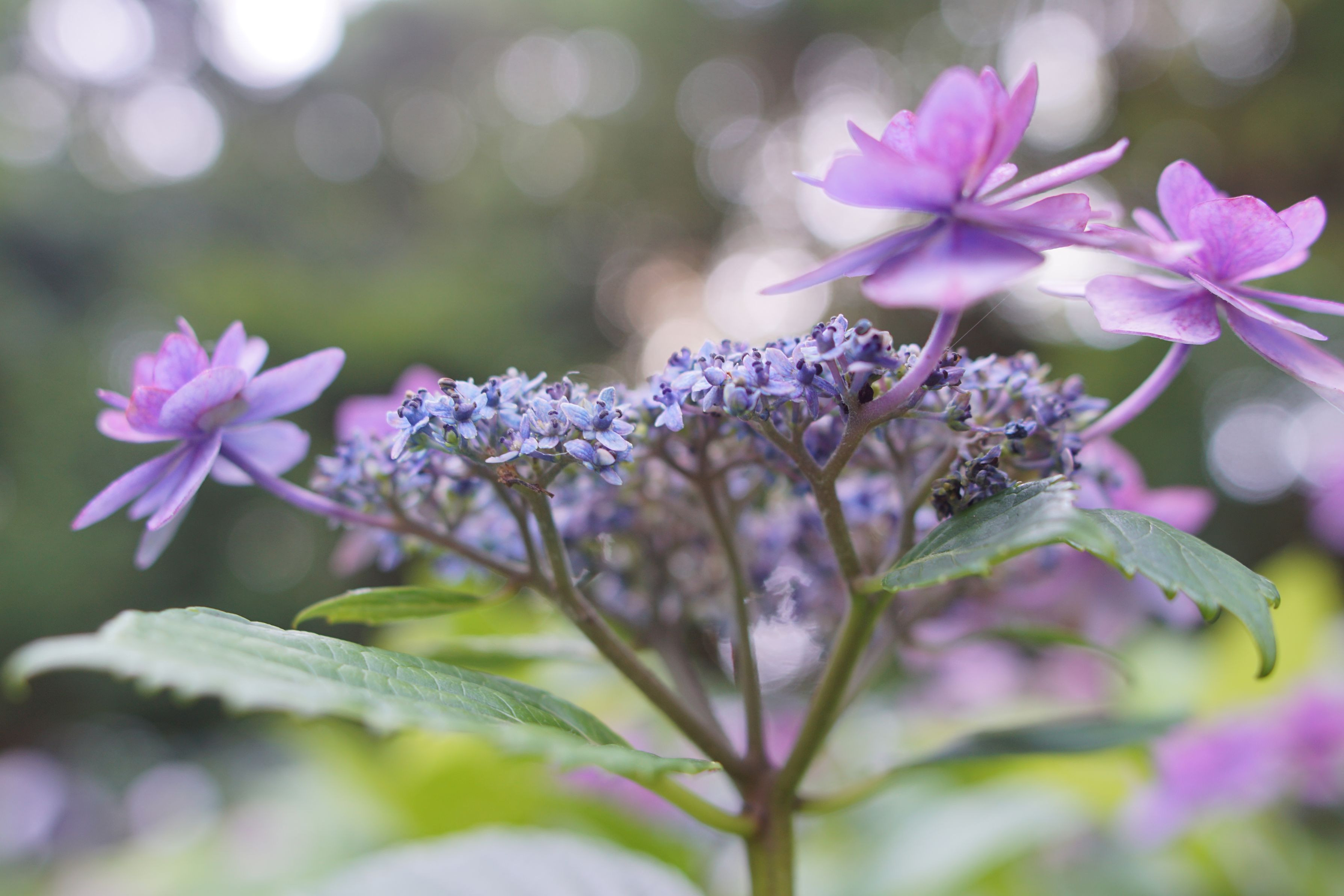 鎌倉の長谷寺の紫陽花小路で撮りました。 遠近差を利用して、木漏れ日をキラキラ玉ボケにしてみました。