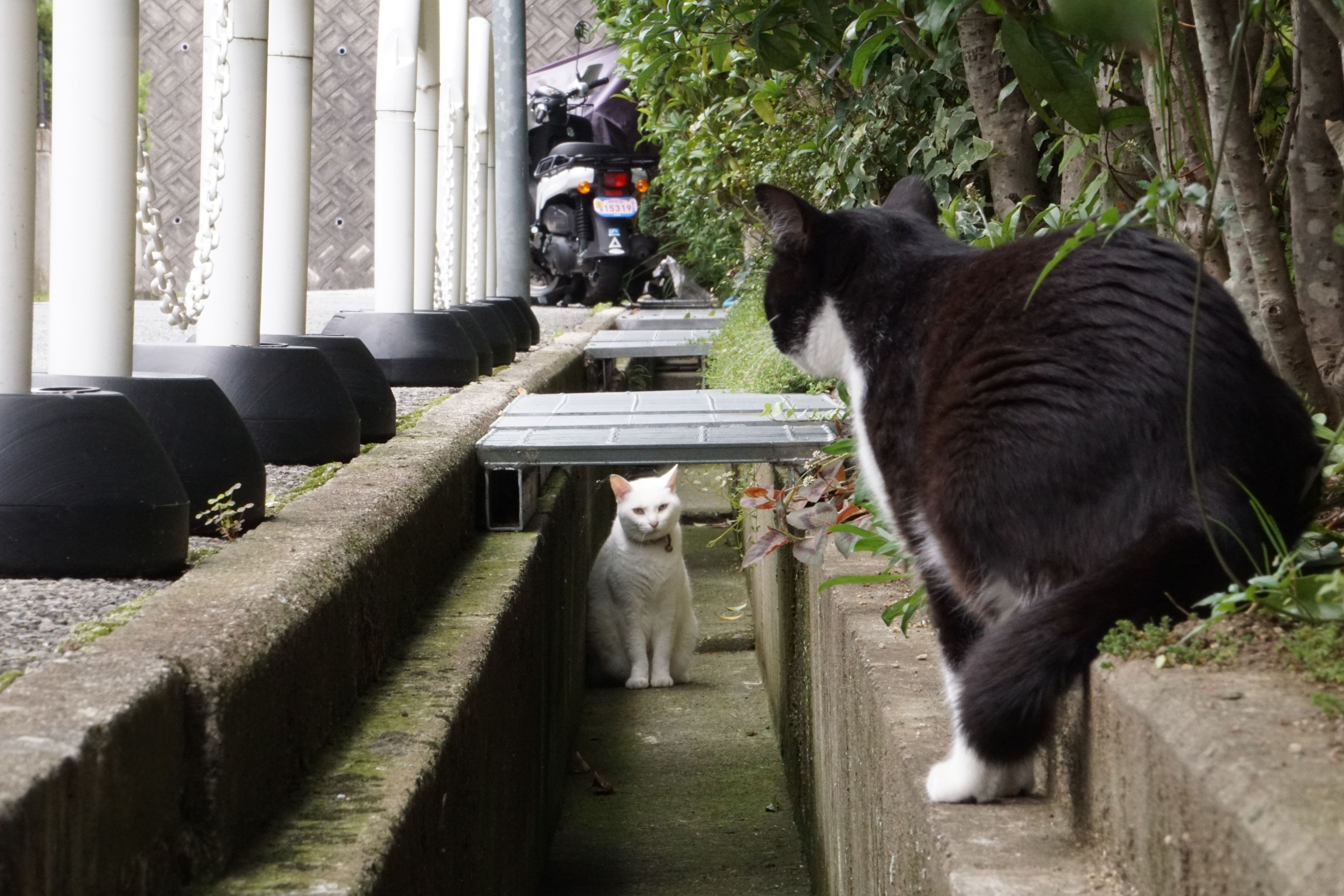 睨み合いの瞬間を! 特にこの後何もありませんでしたが 笑 手前のにゃんこの顔はどんな顔してたのだろうか・・・