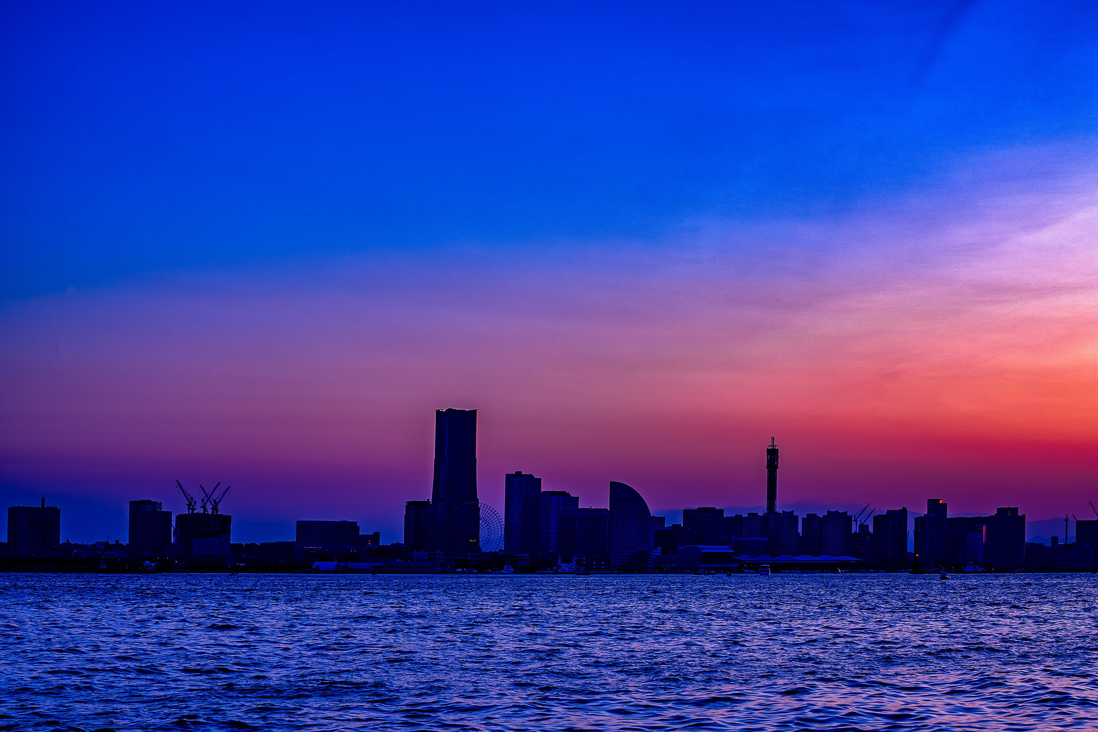 みなとみらいの夕景を対岸から