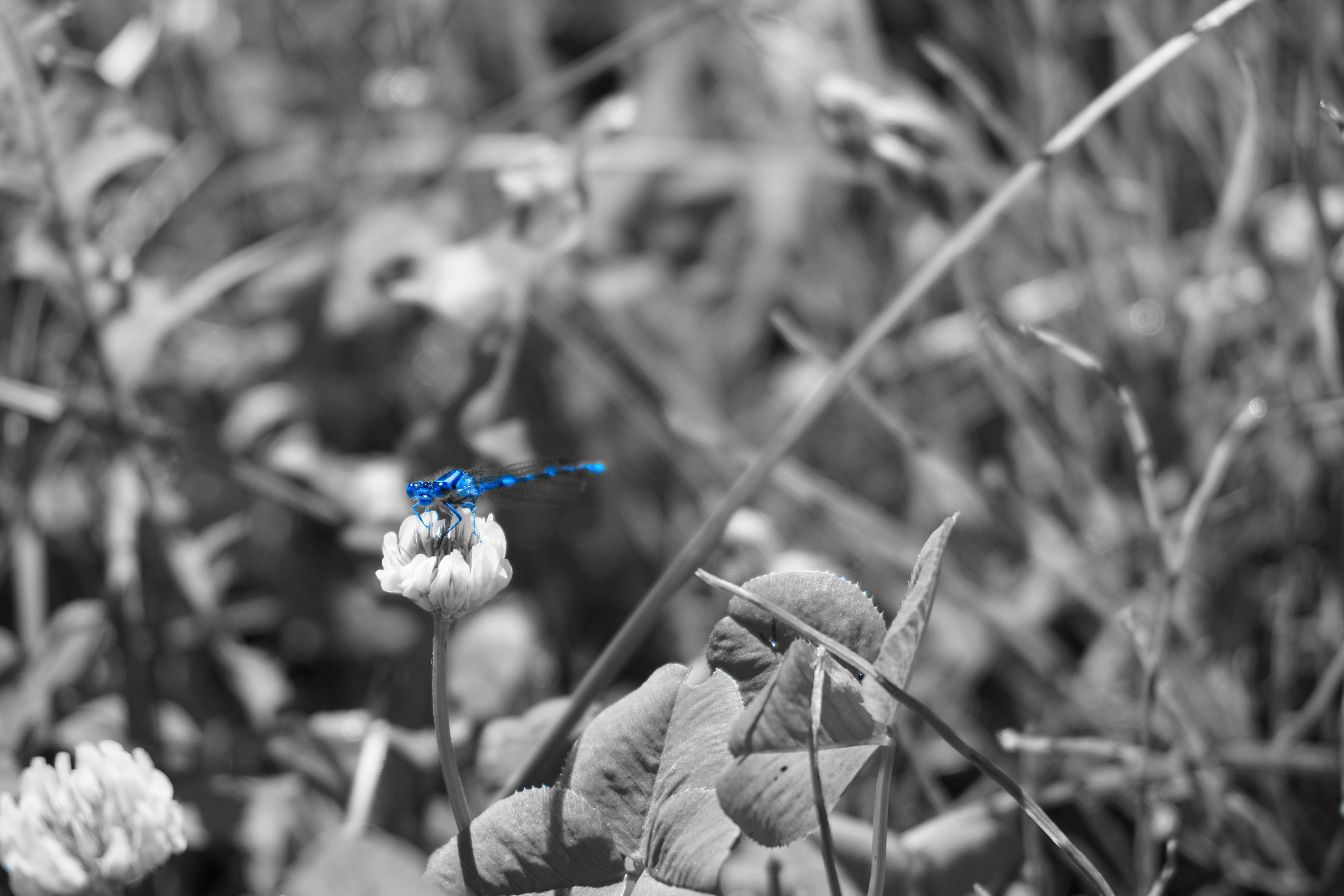 普通に撮ると,周りの緑に埋もれがちだったのでパートカラーで. もっと寄りたかったけど,1650のキットレンズではこれが限界でした.