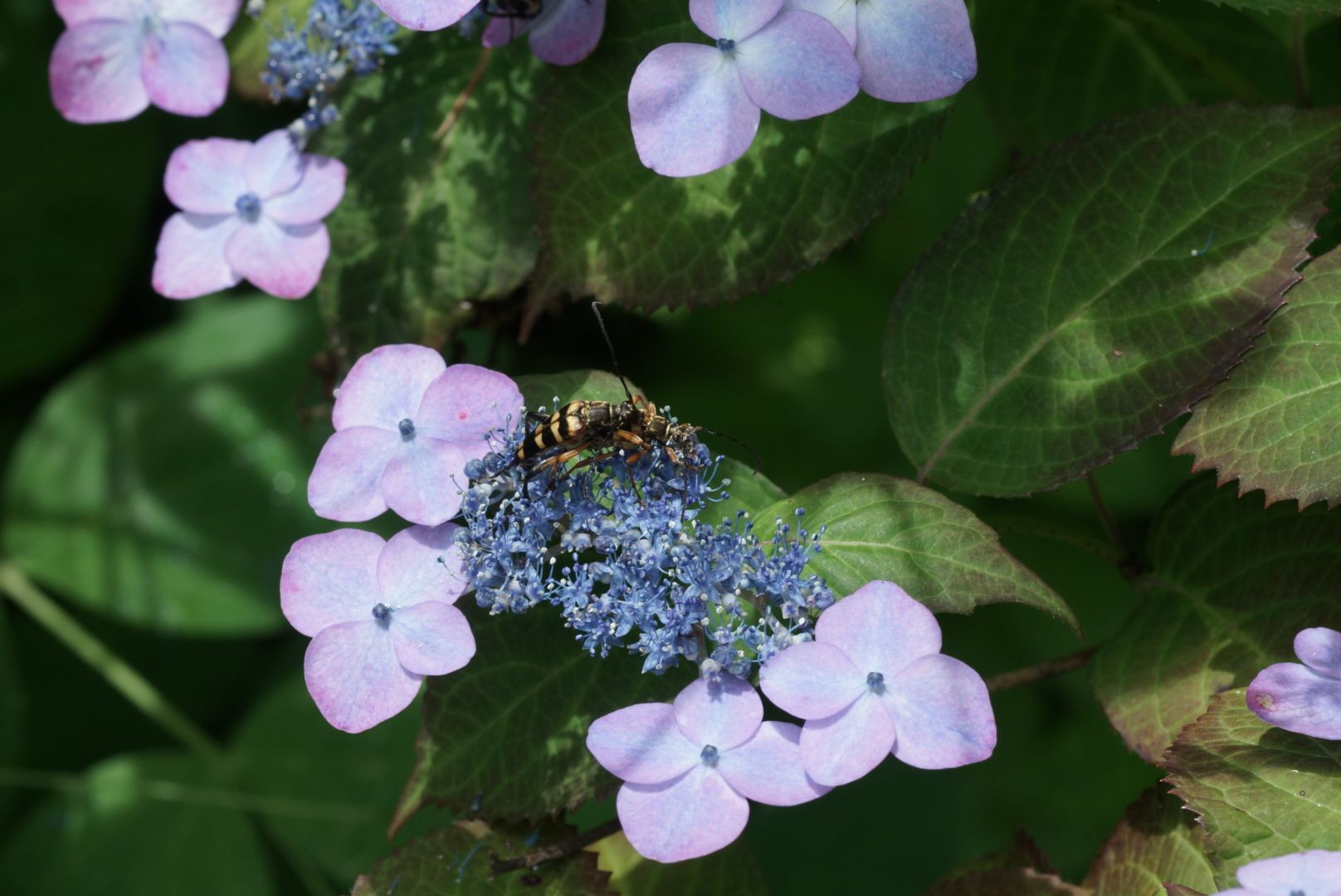ヤマアジサイの上でヨツスジハナカミキリが