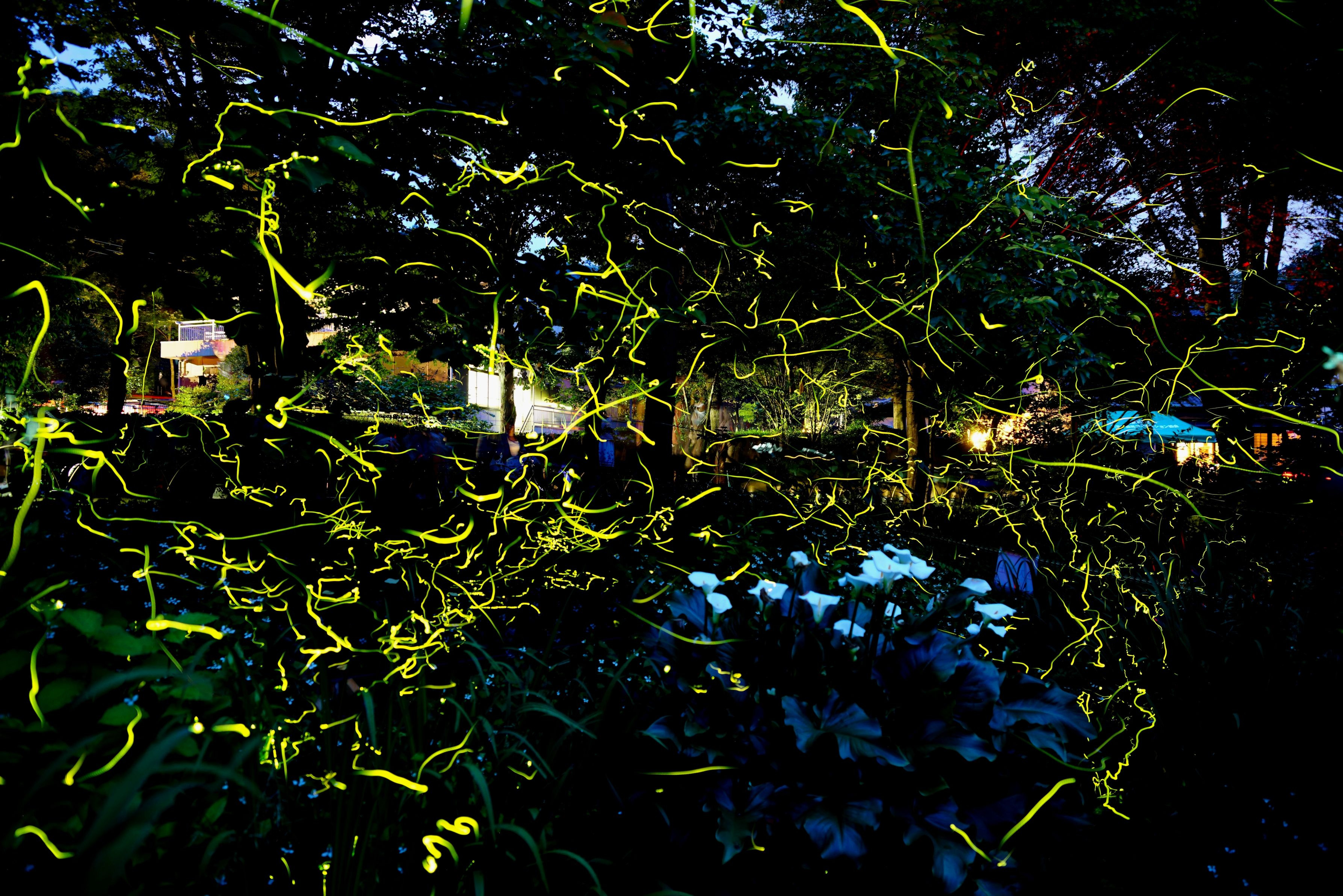 小さな川の上に蛍が乱舞しました。