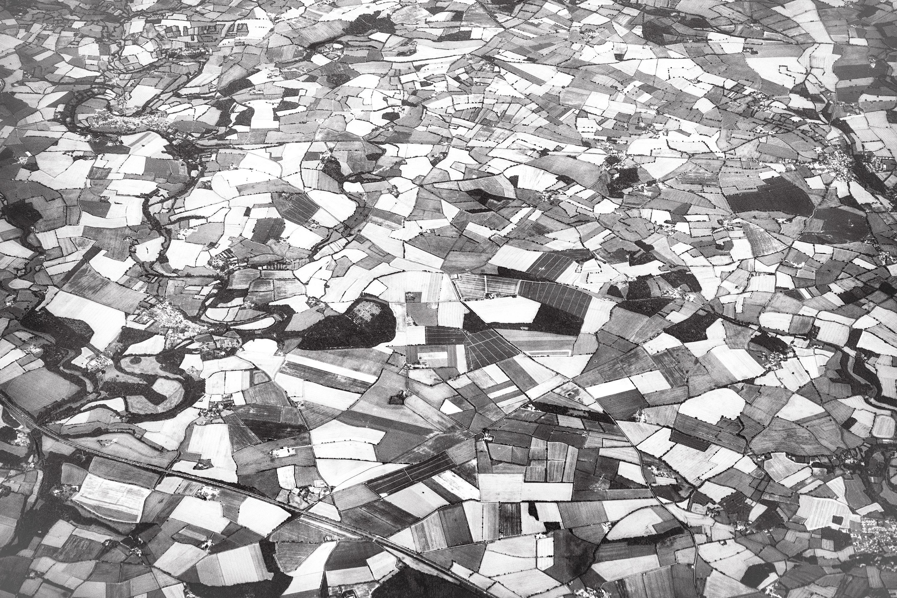 フランス郊外のパッチワーク シャルル・ド・ゴール空港到着目前の飛行機から撮影