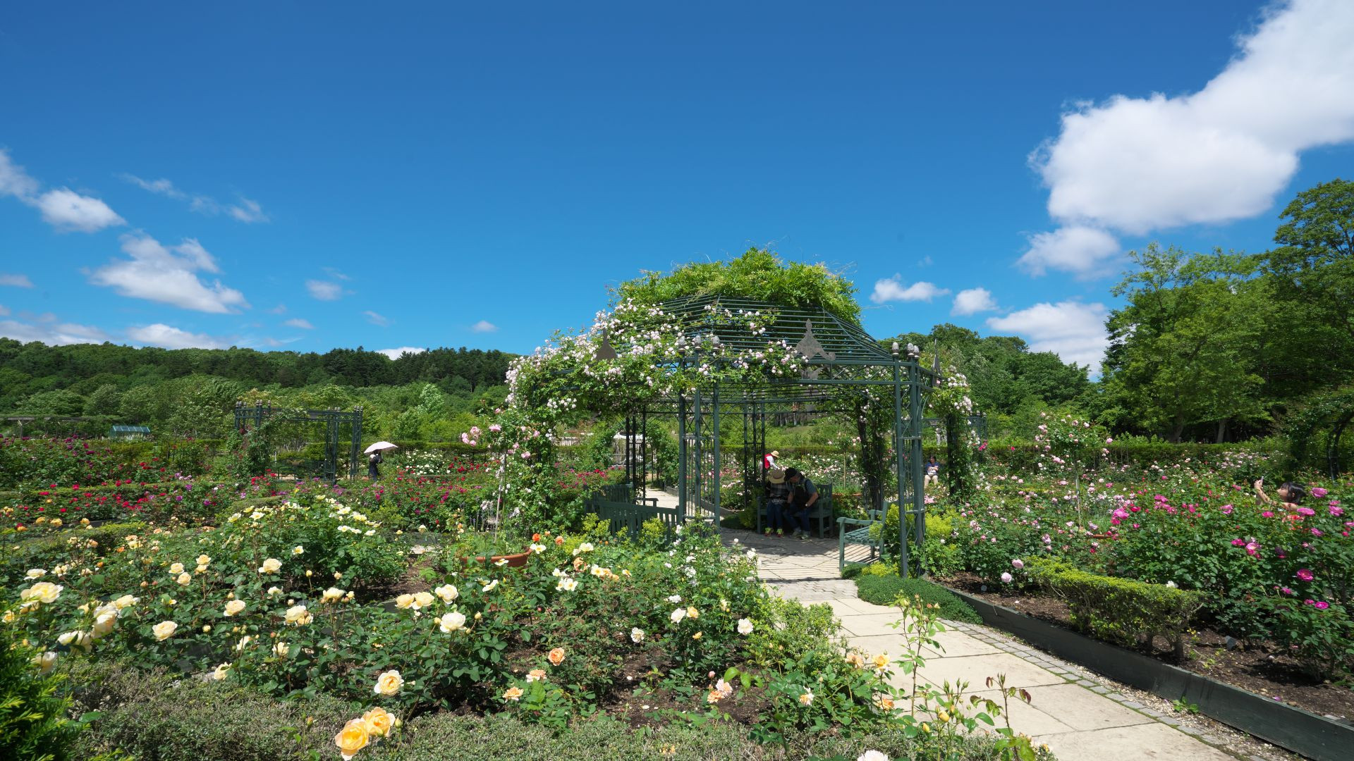 北海道恵庭市のえこりん村のバラ祭りです。2018年7月11日撮影です、