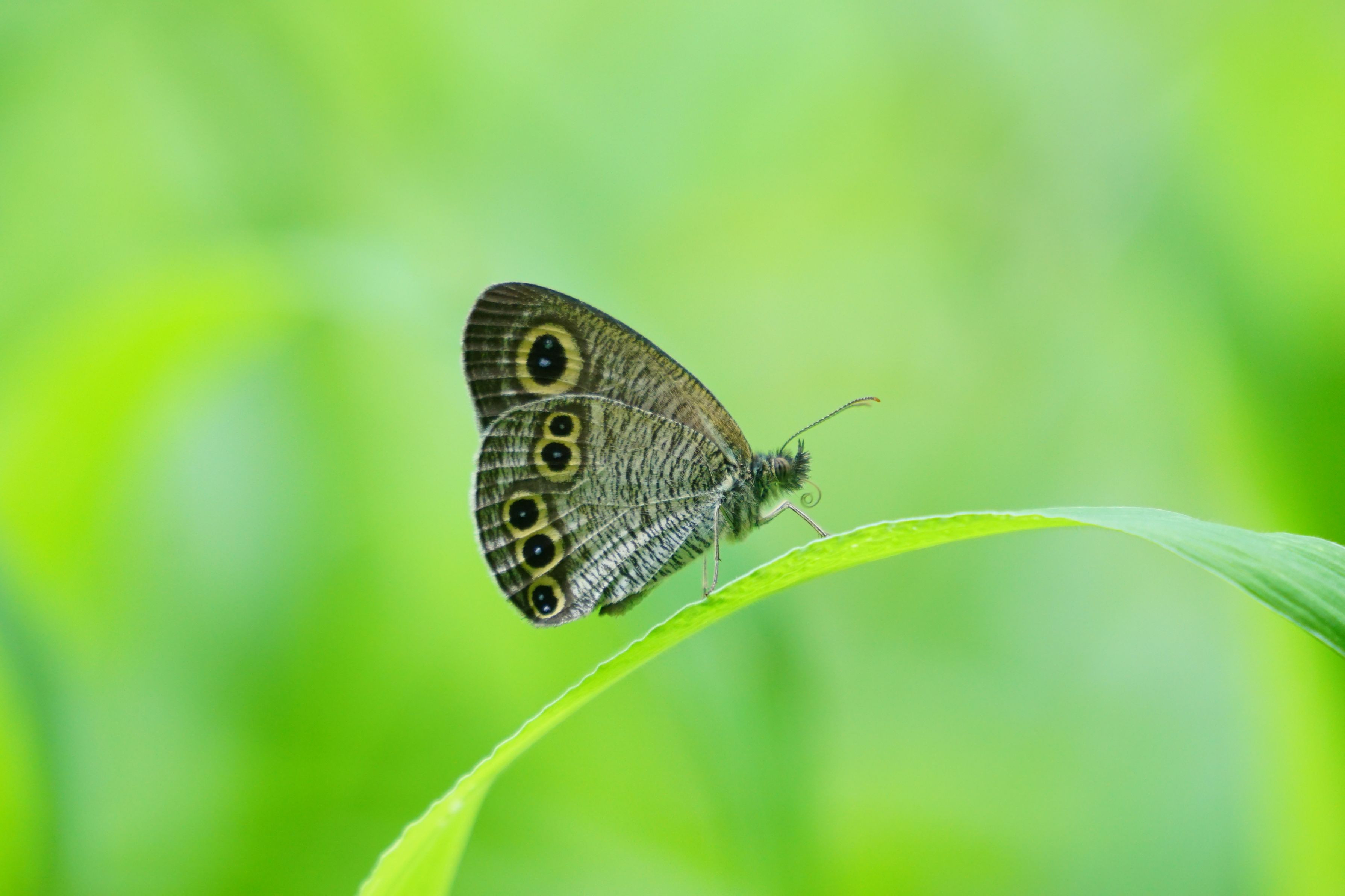 ヒメウラナミジャノメが口吻出して、ビョ~ンと伸ばしたり丸めたりしています。