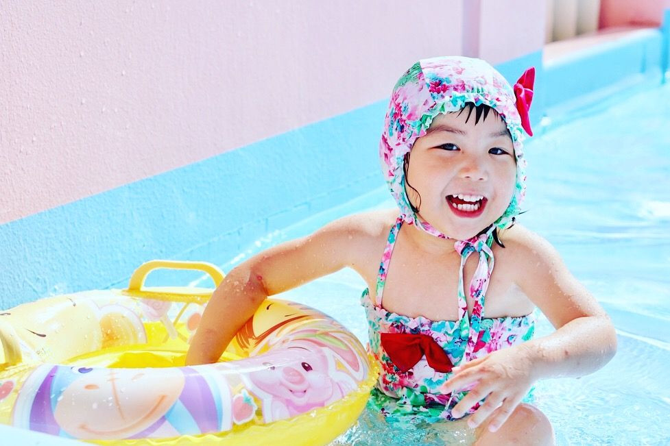 保育園以外で初の大きいプールで楽しんでました。 一人でしばらく浮き輪で遊んでた(^-^) 250円の水着可愛いすぎ!