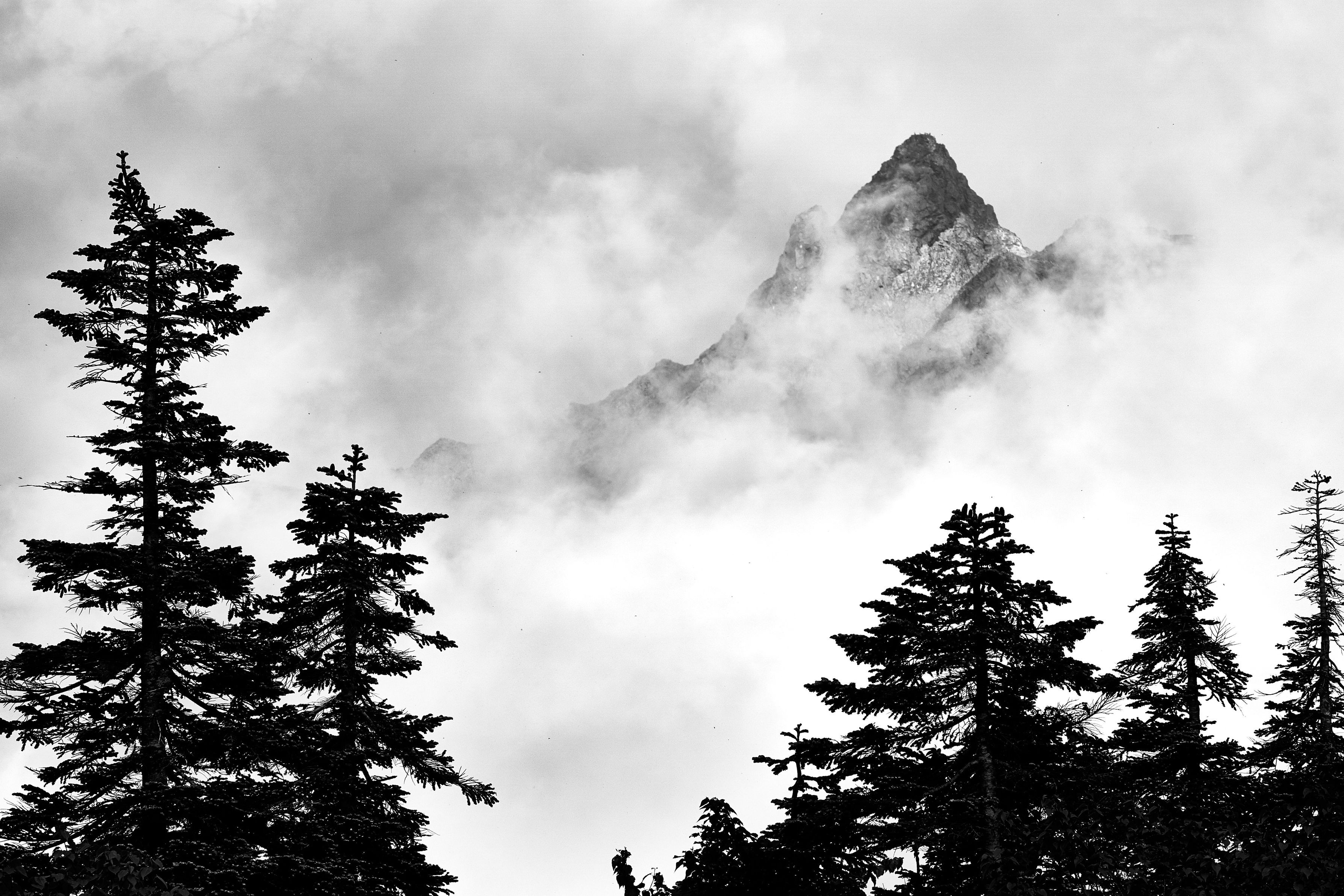 雲のおかげで、ほとんど色のない世界になったので、モノクロで現像してみました。