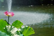 猛暑の中、噴水で涼をとる
