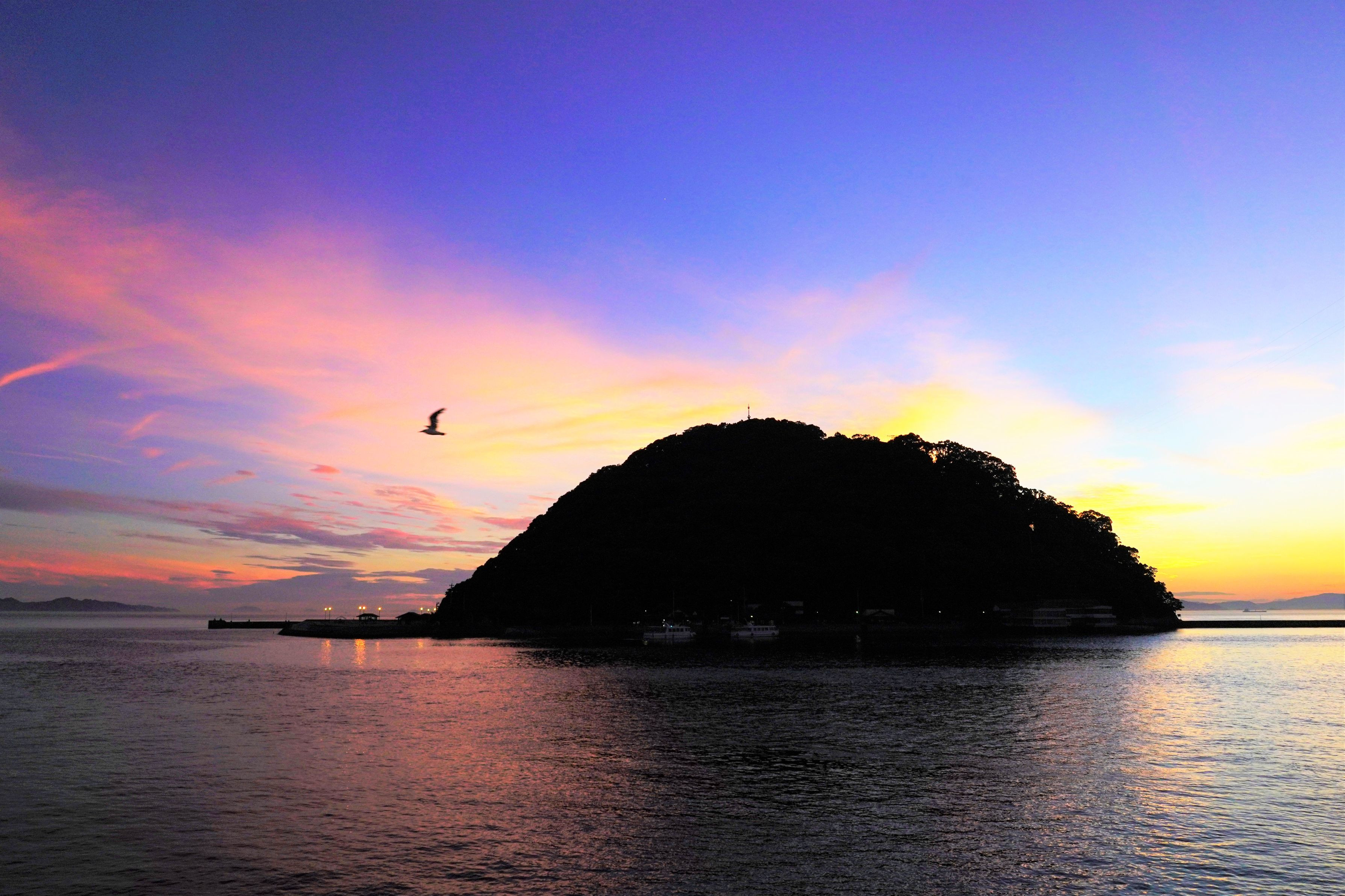 伊予の海の夕焼けはすみずみまで美しい。