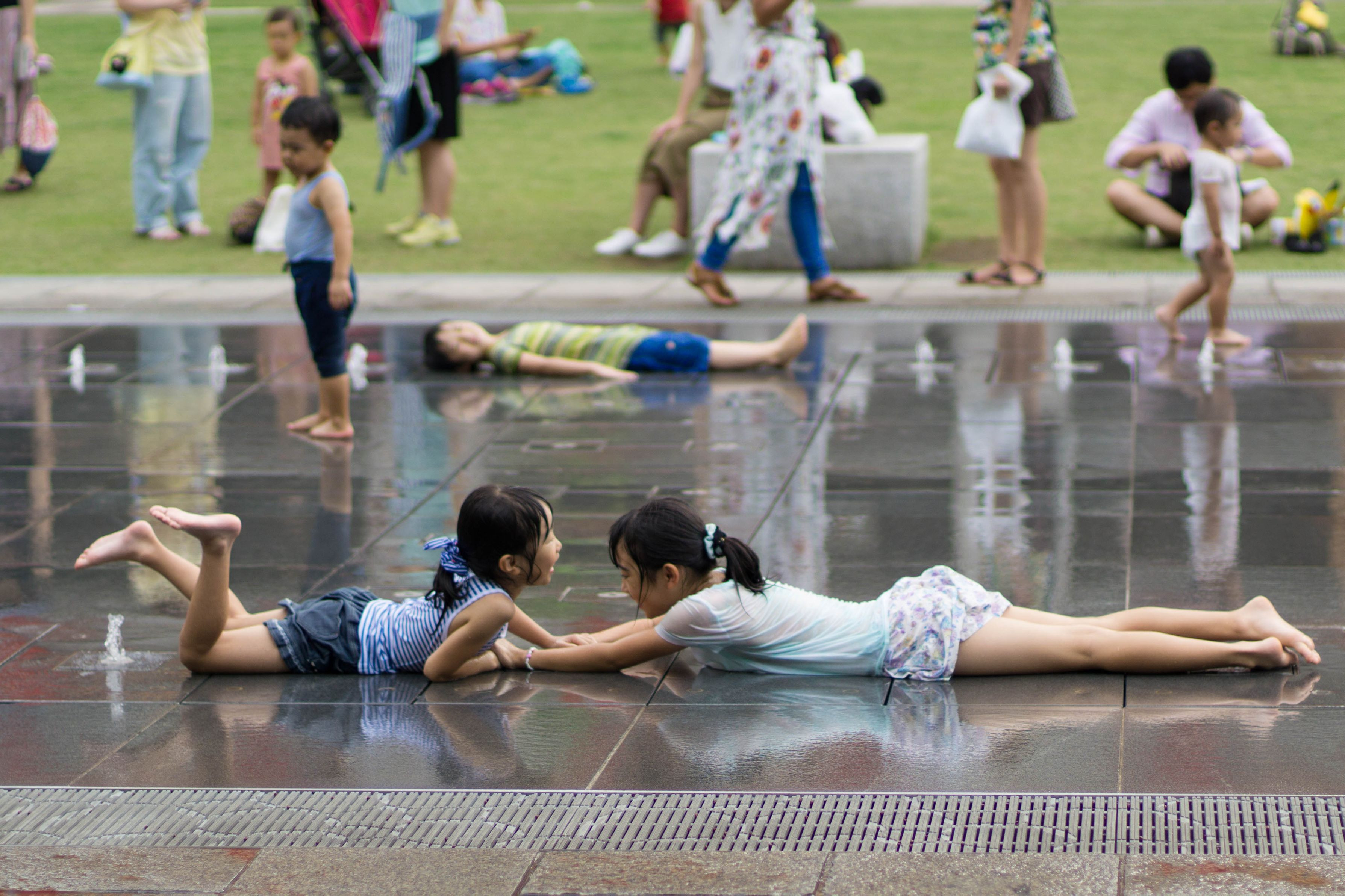 吹出し口をふさいで噴水を待つ......そういえば昔自分もやりました^ ^。