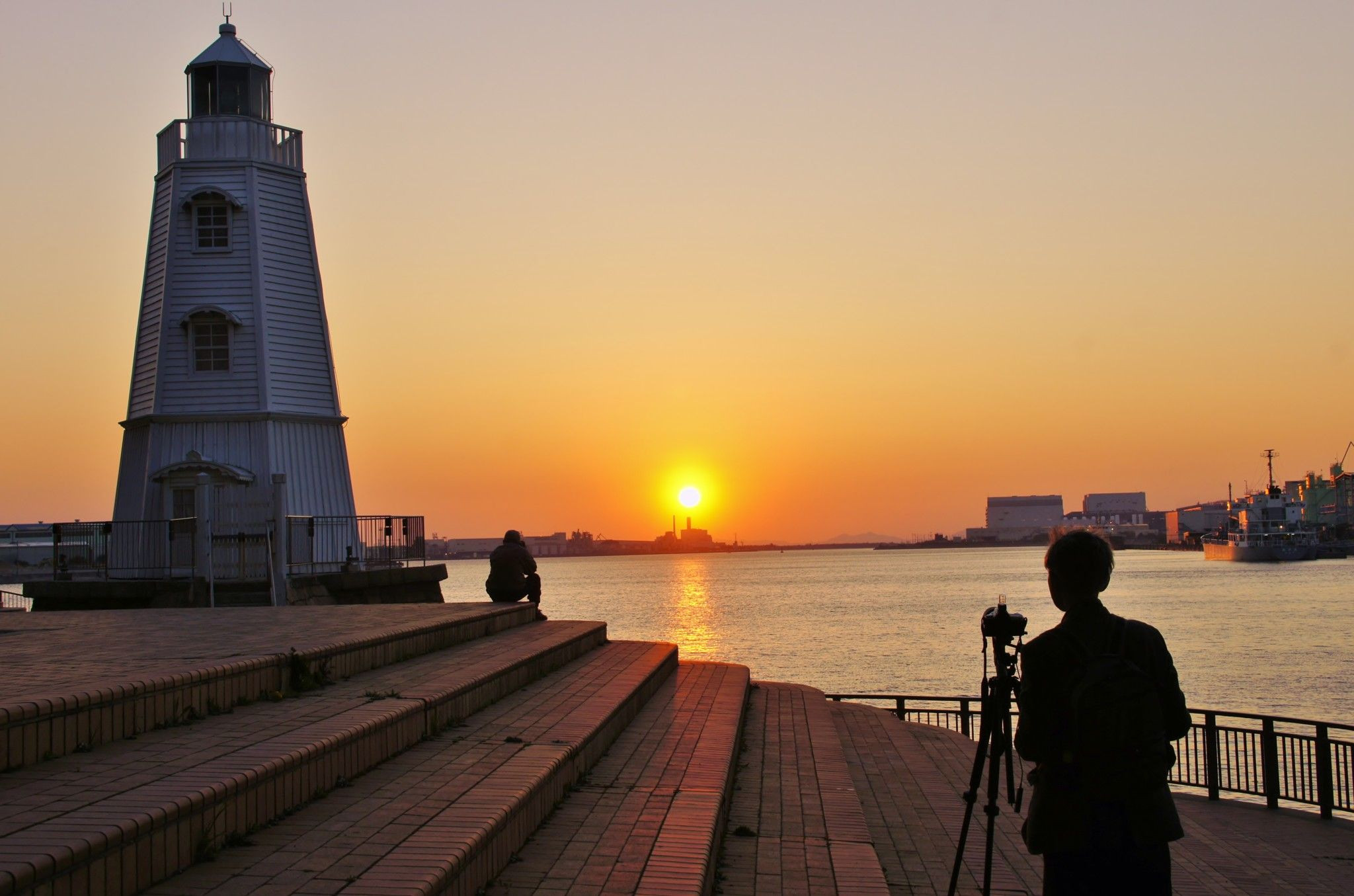 製品情報>My Sony>αcafe>旧堺港灯台夕焼け狙うカメラマン(アンダンテさん)