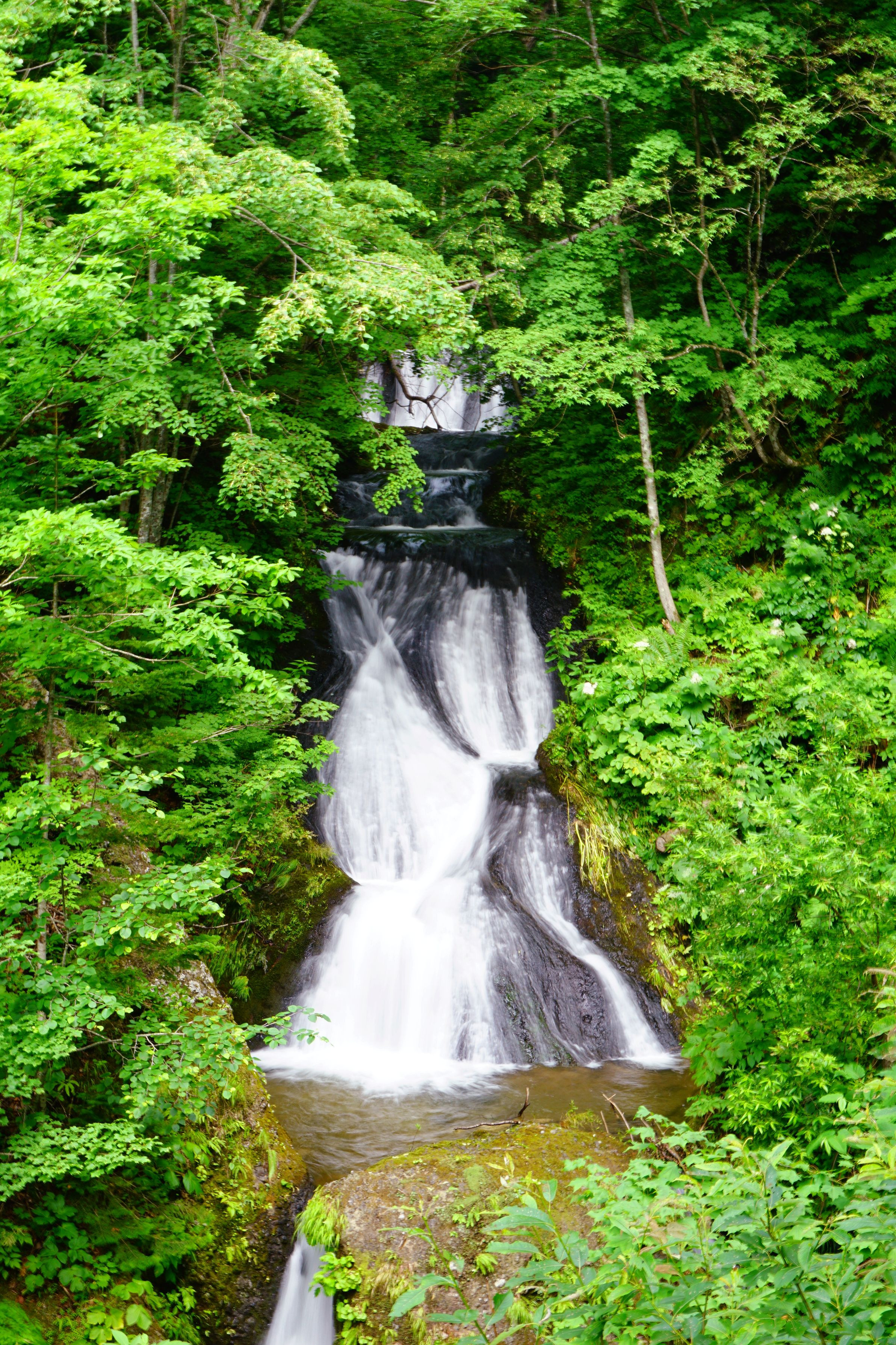 名前の通り9段からなる滝 水の流れが幾筋にもなっていて綺麗でした