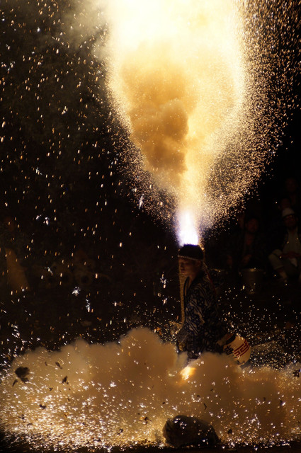 手筒花火のハネを狙う