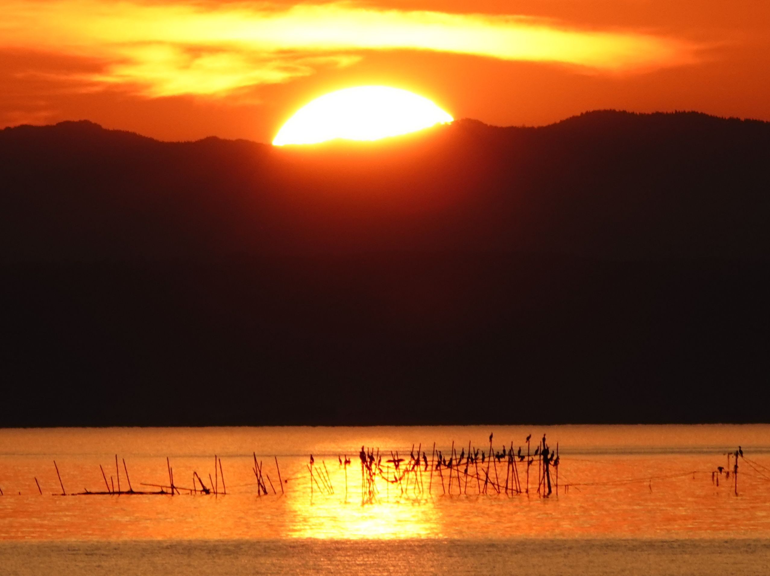 琵琶湖の西の山麓に夕日が落ちていくところ。 明日も良い日になりますように。