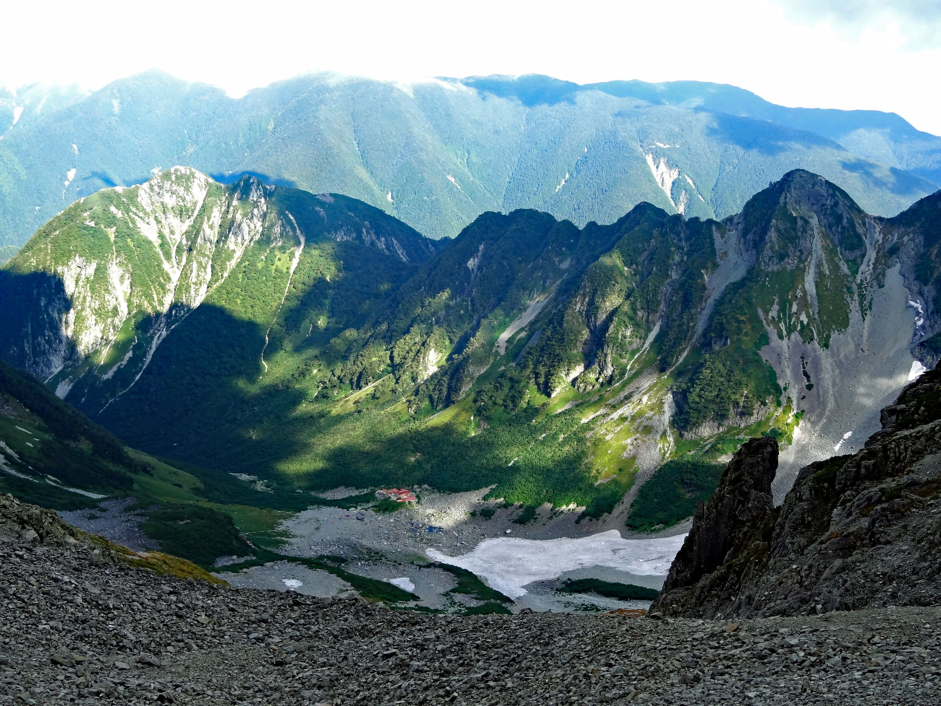 奥穂高岳(百名山)への道 遥か下に涸沢ヒュッテ