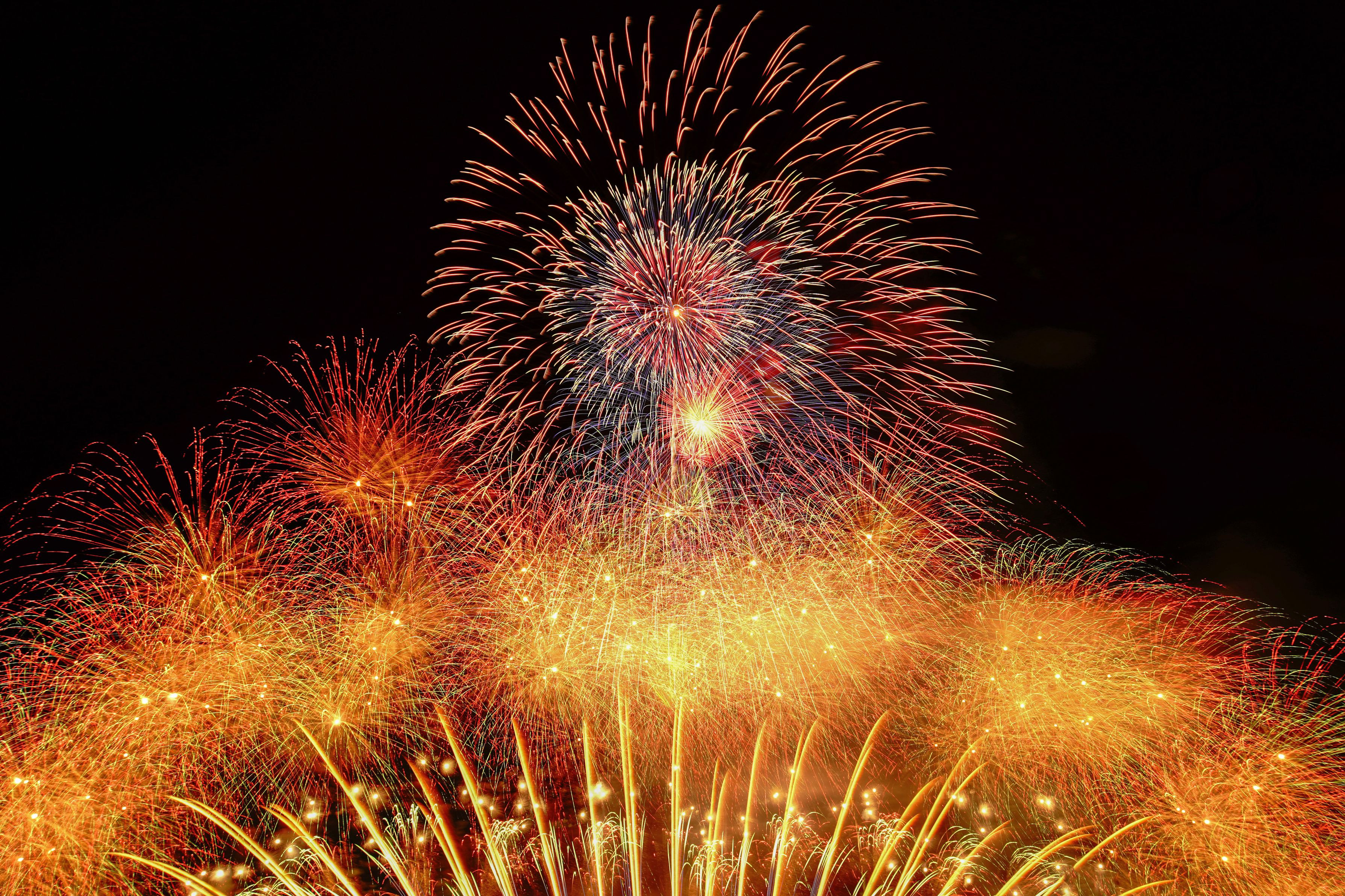ソフトで多重合成、トリミング、補修をしています。 大迫力の花火大会でした。 少しでも雰囲気を感じていただければ嬉しいです。
