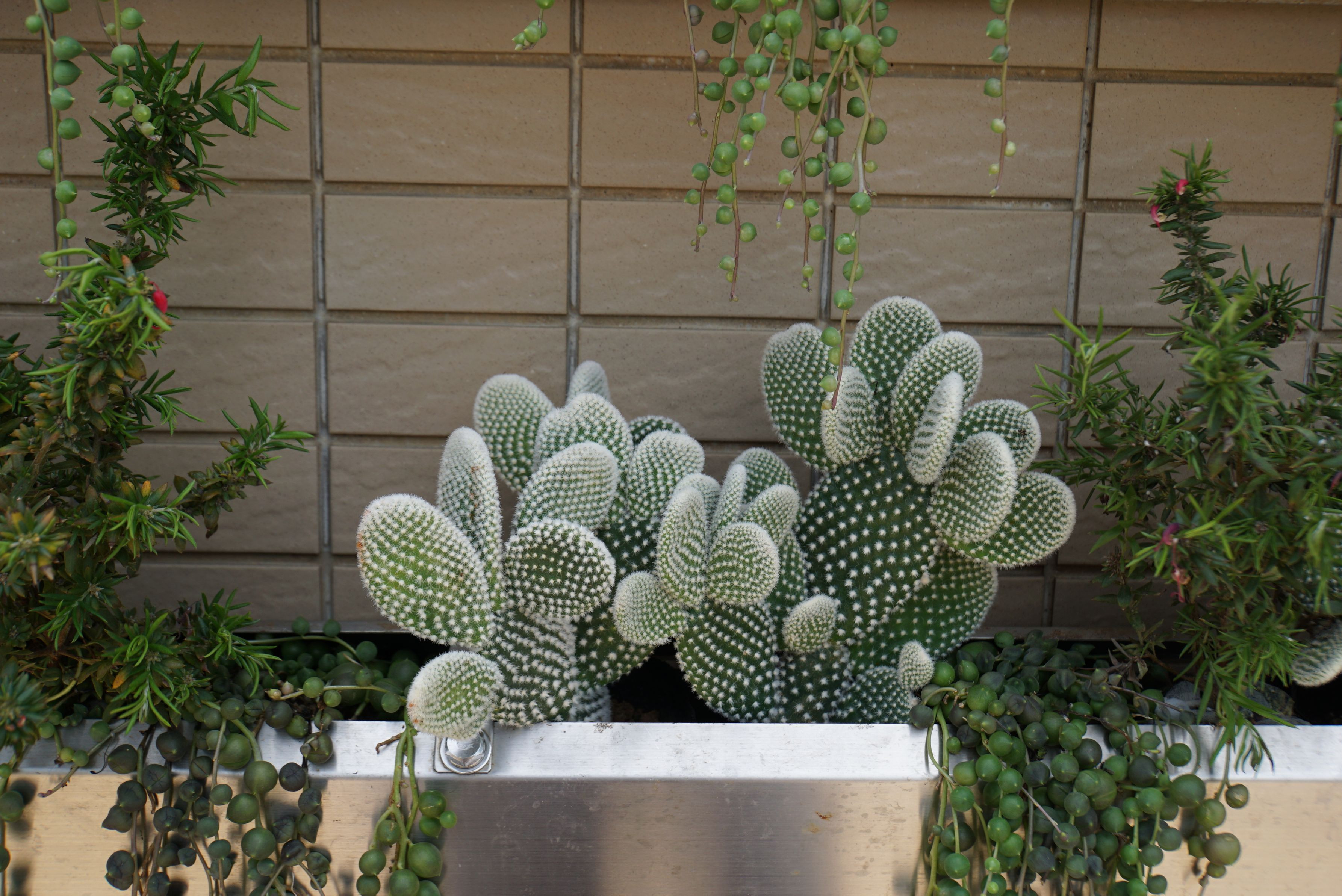 ビル郡の壁に設置してある植物達の一コマです。