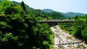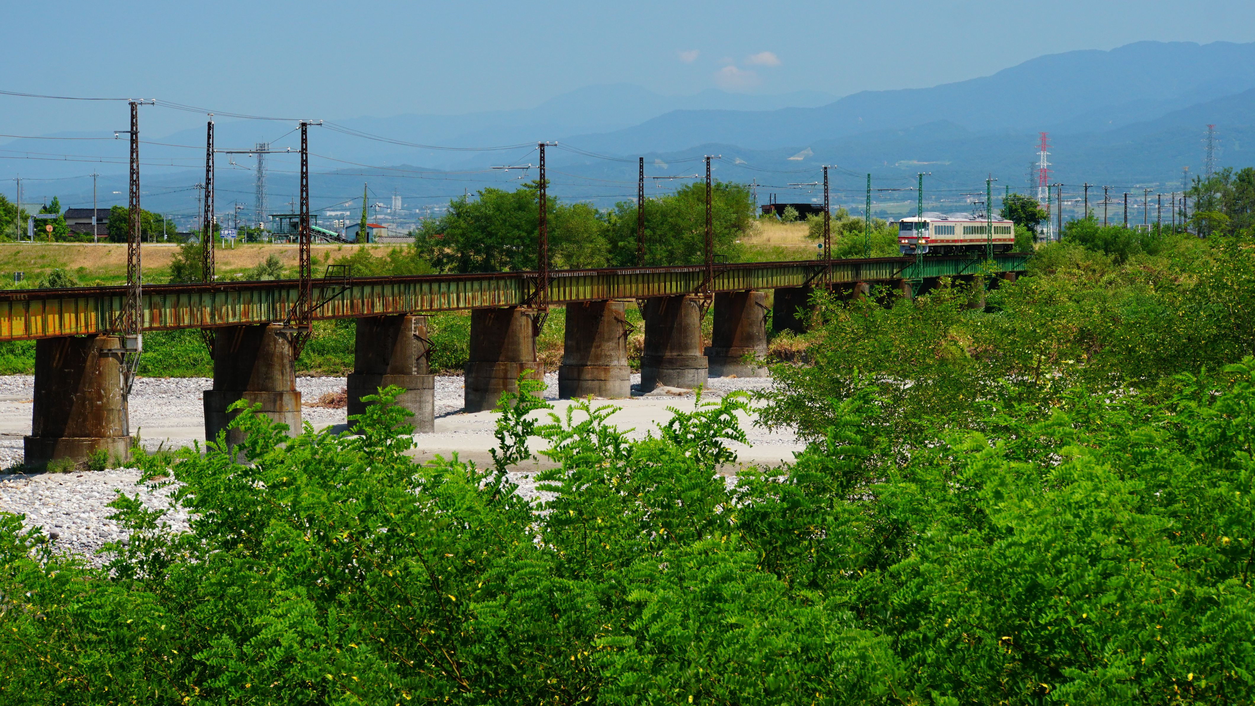 前作と同じ場所ですけどアングルを変えて。 富山地方鉄道レッドアローを上流から下流へ追っかけました(≧◇≦)