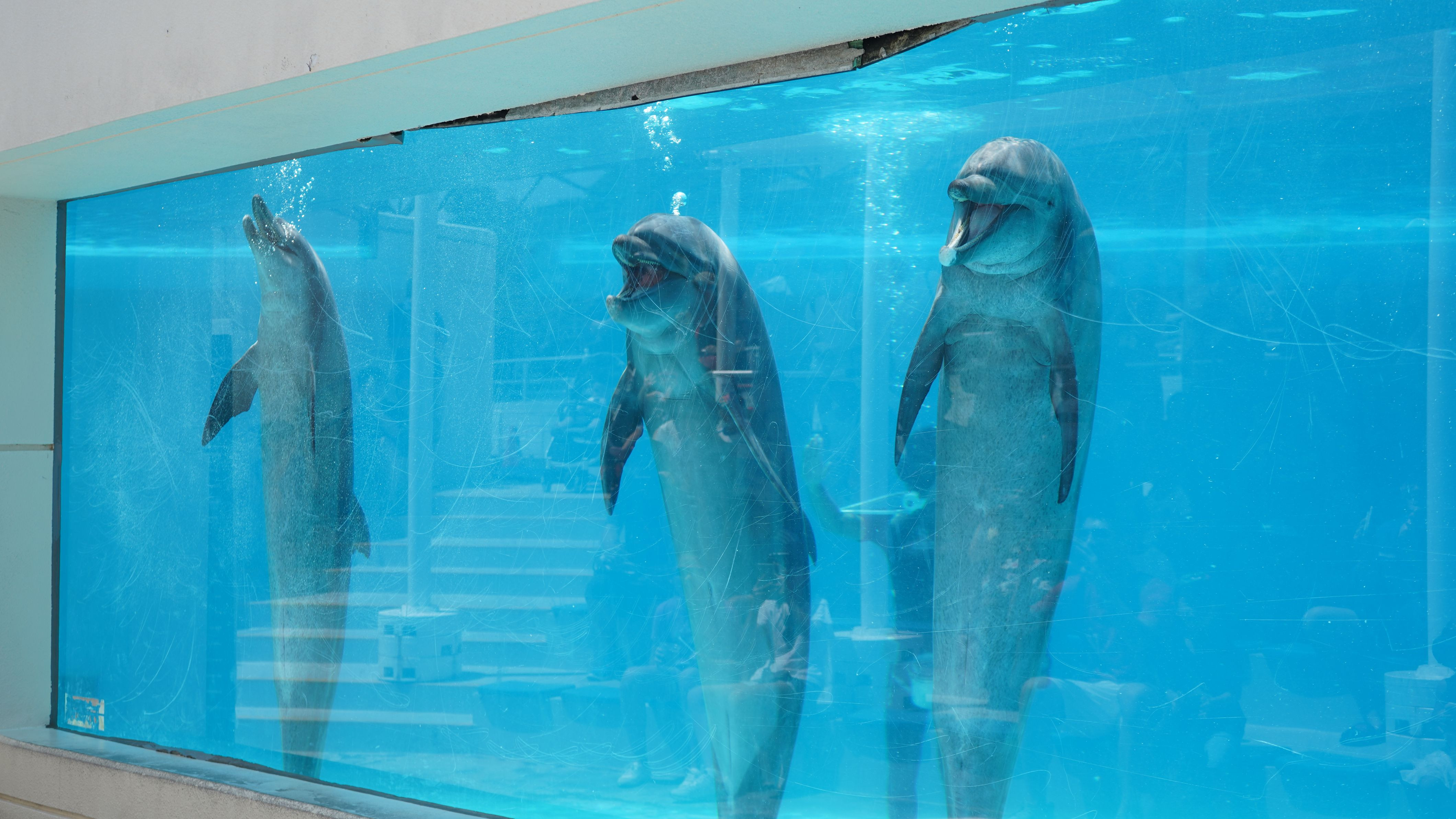 イルカが笑っているように見えます。 でも、イルカの世界では違う意味なんでしょうね。。。 でも、見ていて楽しい気分になれるので気に入ってます。 (美ら海水族館)