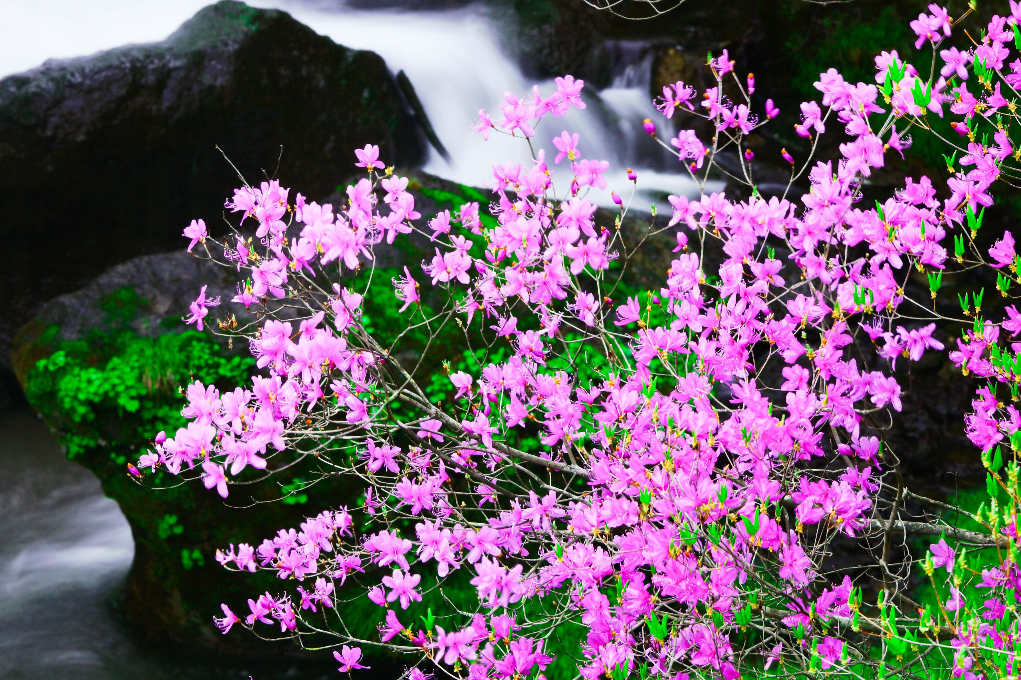 日光湯川の渓谷沿いにさく トウゴクミツバツツジを撮ってみました