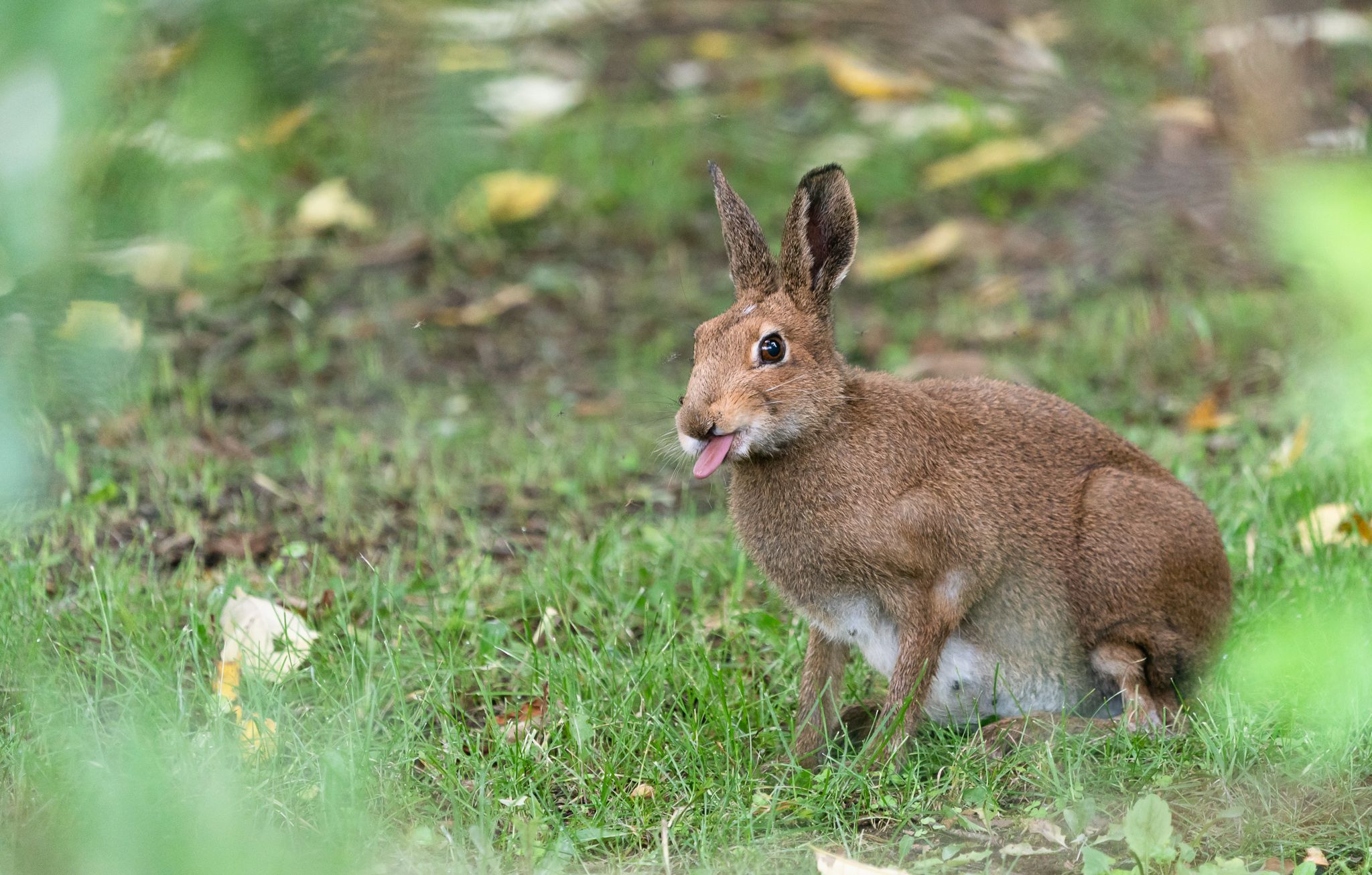 夏になってすっかり茶色になったエゾユキウサギに出会いました。
