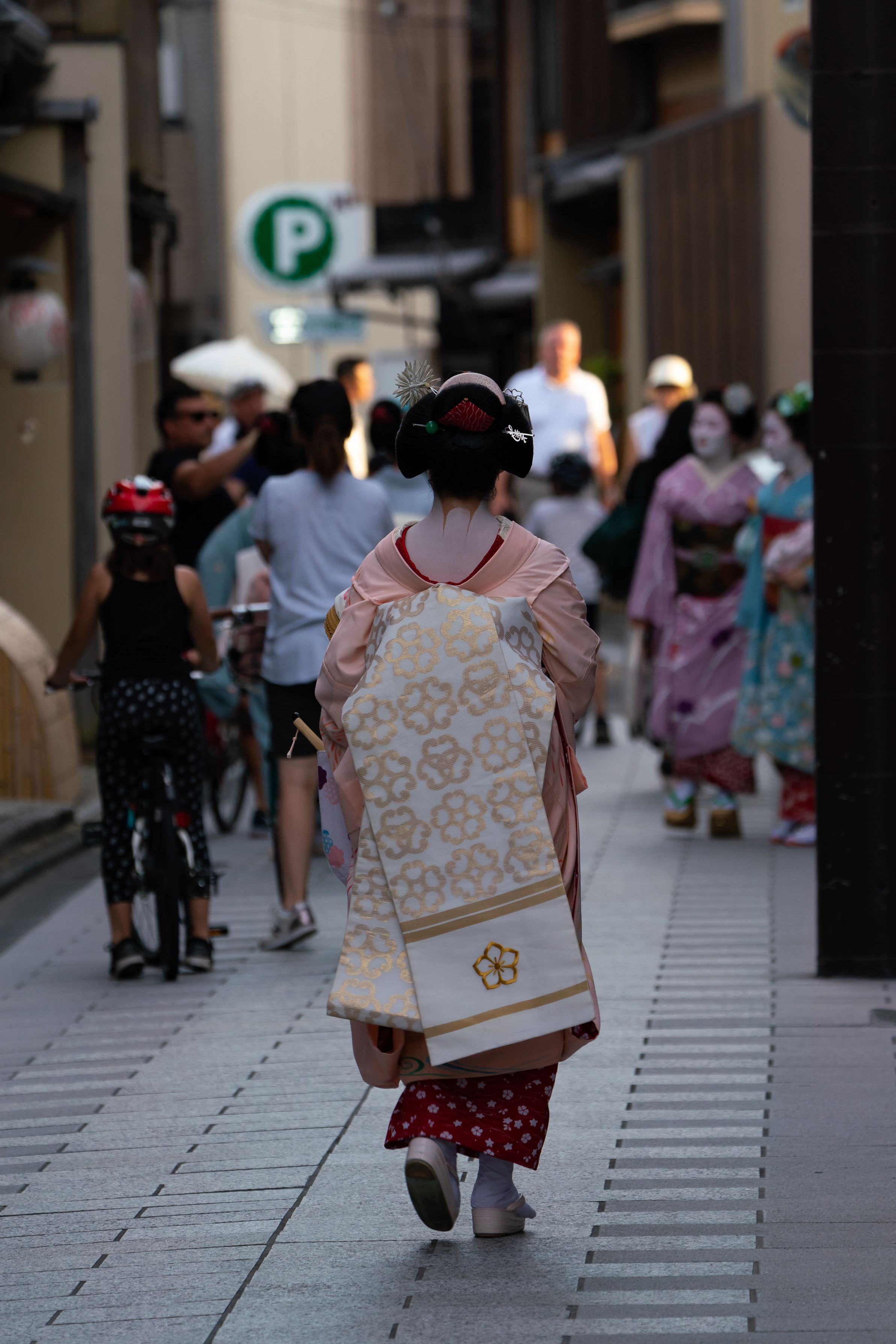 京都に行くたびに、舞妓さんに逢いたいと思っていましたが、やっと念願叶い本物舞妓さんに逢うことができました。 後ろ姿だから・・問題ないと思いますが、問題あれば削除させていただきます。 本物の舞妓さん・・綺麗でした。ハマりそうです。