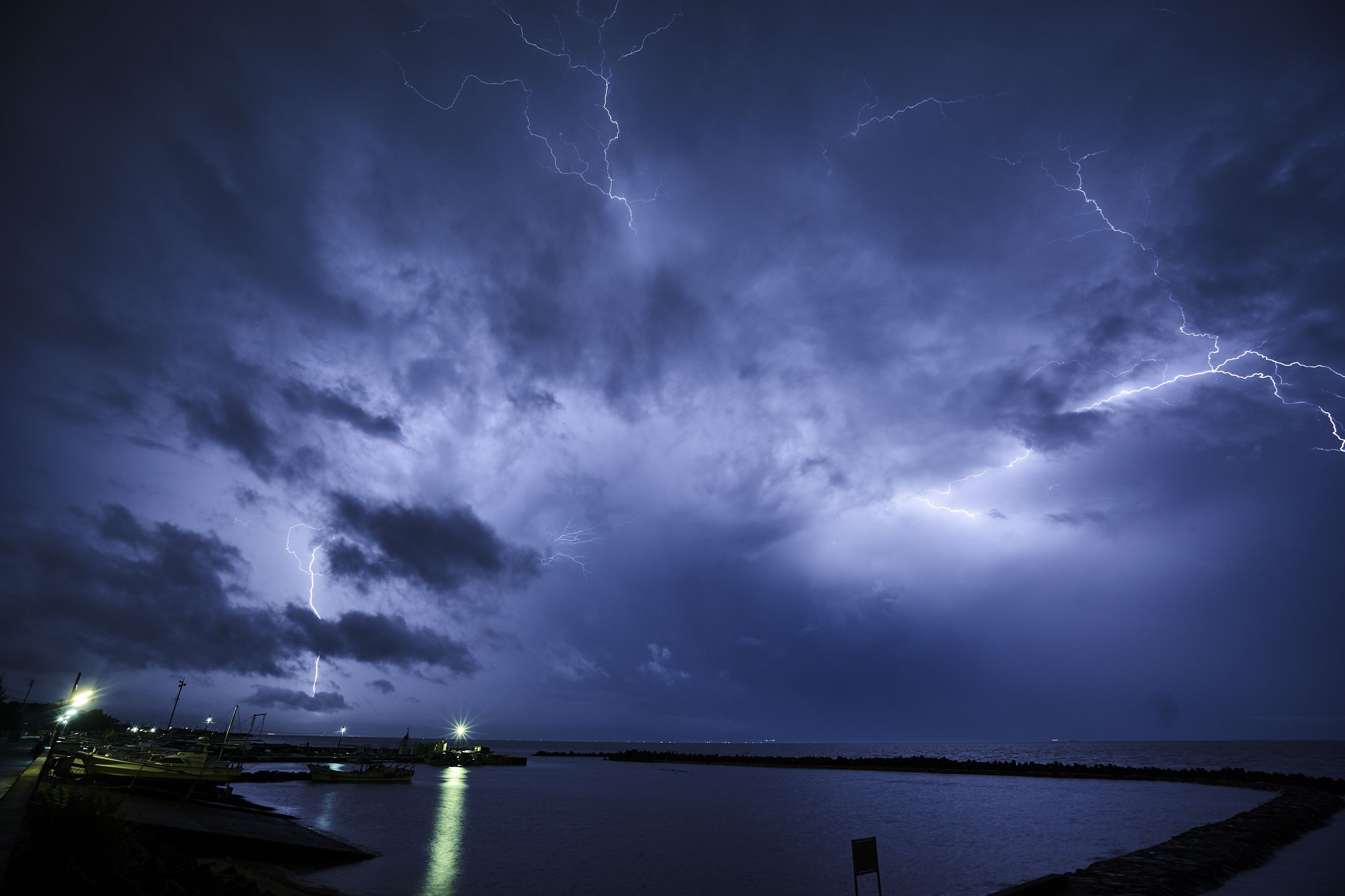 稲妻を探して、嵐の中で撮影 場所:明石市魚住町中尾